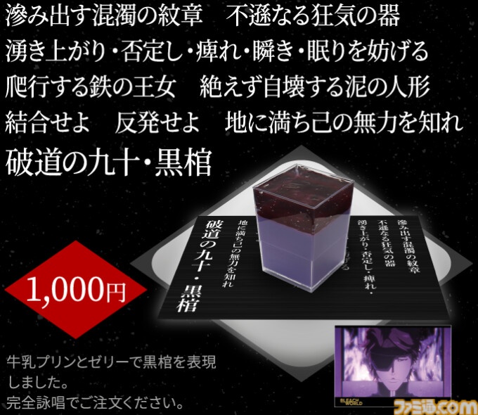 아이젠 소스케의 흑관을 이미지한 젤리푸딩