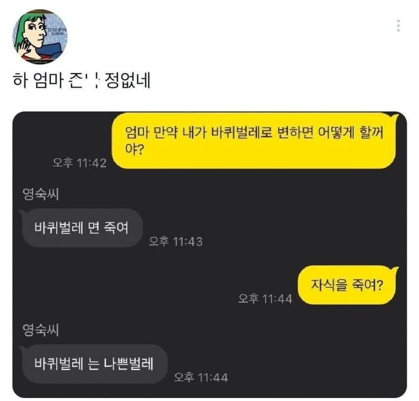 엄빠 내가 바퀴벌레로 변하면 어떡할꺼야?