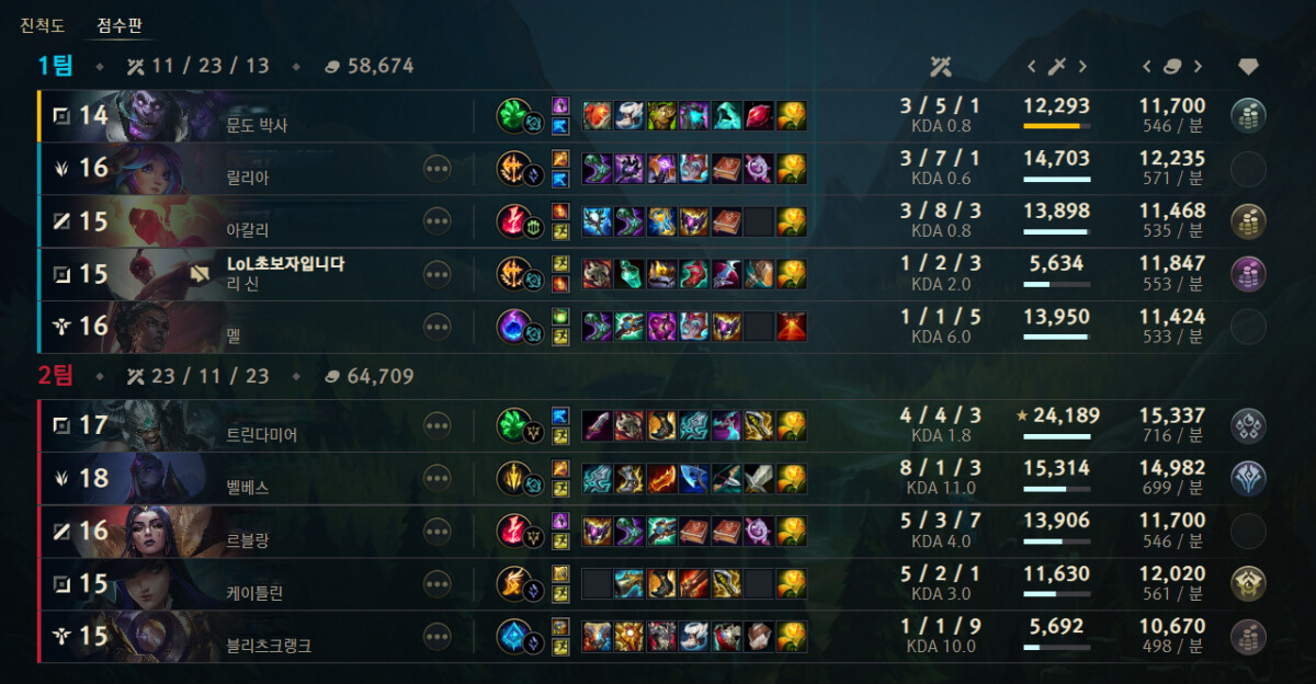 그래도 15 서렌까지 참자 하고 기다렸는데 어떤 개새끼가 서렌을 안침. 리신이 반대할건 예상했는데 어떤 놈이 계속 리신이랑 같이 칼반대침 (심지어 저새끼 때문에 전라인 손해보고 이기는곳 없었음)