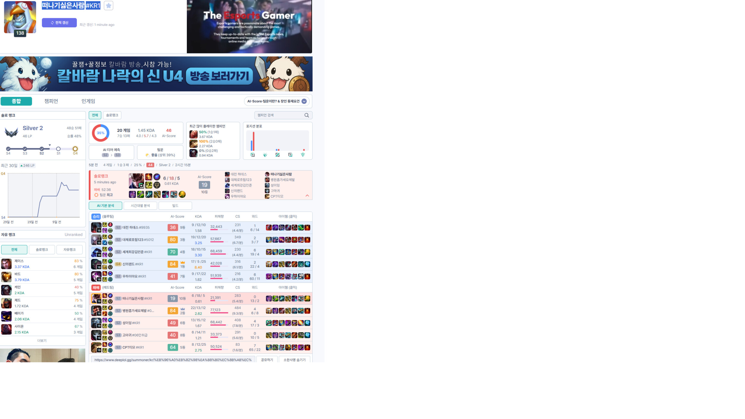 탑 라인전 점화들고 져서 고의적으로 겜안함+죽음