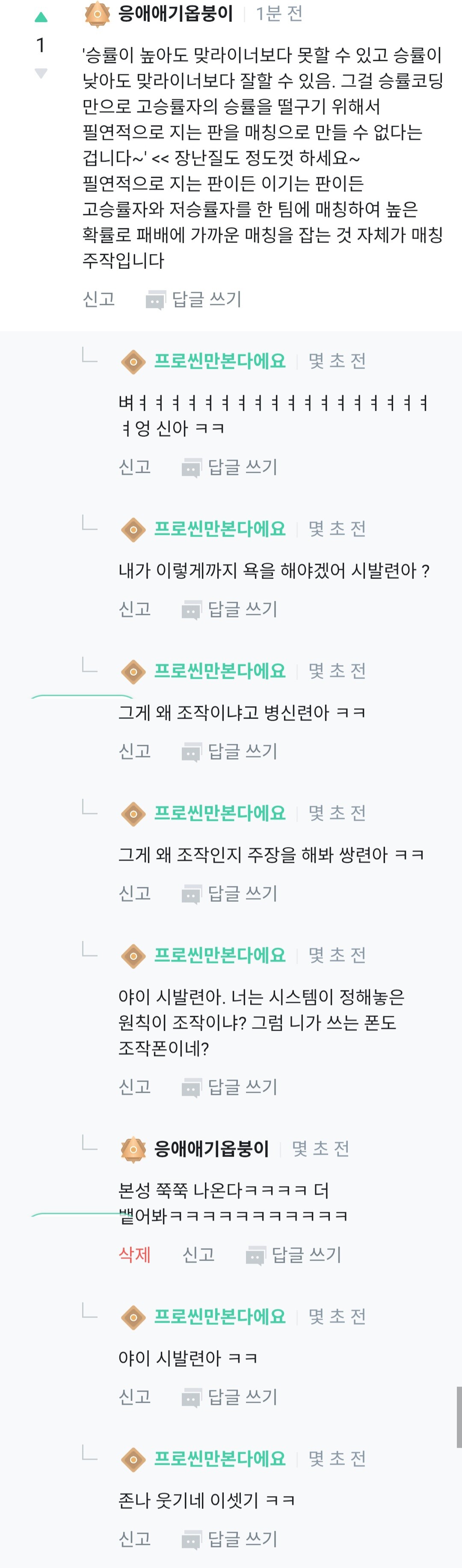 역시 대옵붕 반대의견이 나오니 논리로 압살~~~~~ㅋㅋㅋㅋㅋㅋㅋㅋㅋㅋㅋㅋㅋㅋㅋ 아 재밌다 "프로씬만본다에요" << 말투부터 꼬름하더니 본성 드러나죠? 토론은 개뿔 내가 말했지? 이런애들이 있으니까 건토가 안된다고ㅋㅋ