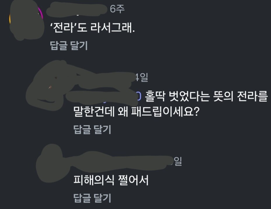 정상인은 인터넷발 혐오를 모르니까 별생각 없이 편하게 발언한 건데 인터넷 갈라치기에 빠져사는 애들은 뭐만하면 곡해해서 갈라치기하네 지역비하하네 성별차별하네 하면서 발작 일으킴 ㅌㅋㅋ 자기들만 아는 그 오물통 같은 세계를 모두가 알고 조심해줬으면 하는 음침한 찐따감성에 빠져 살고 있음. 네이버 카페에 지뢰표 써놓는 거 보는 거 같아