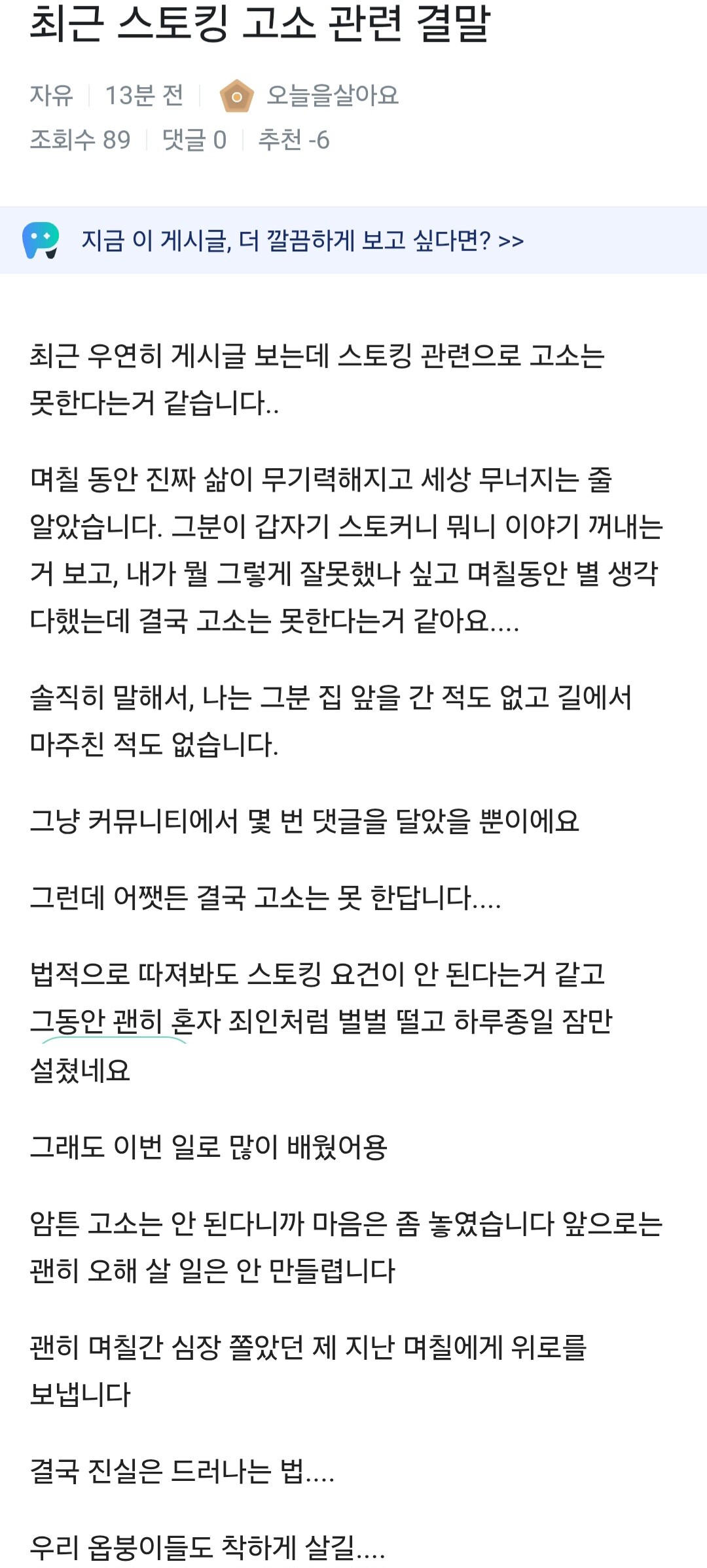 스토킹 관련 찾아봤다면서 갑자기 진짜 스토킹을 시작하네