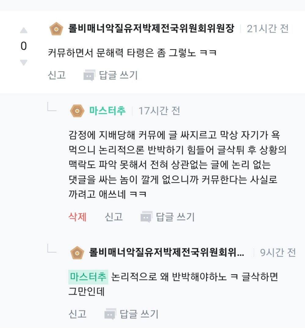추악한 실체가 드러나 버린 롤비매너악질박제전국위원회위원장