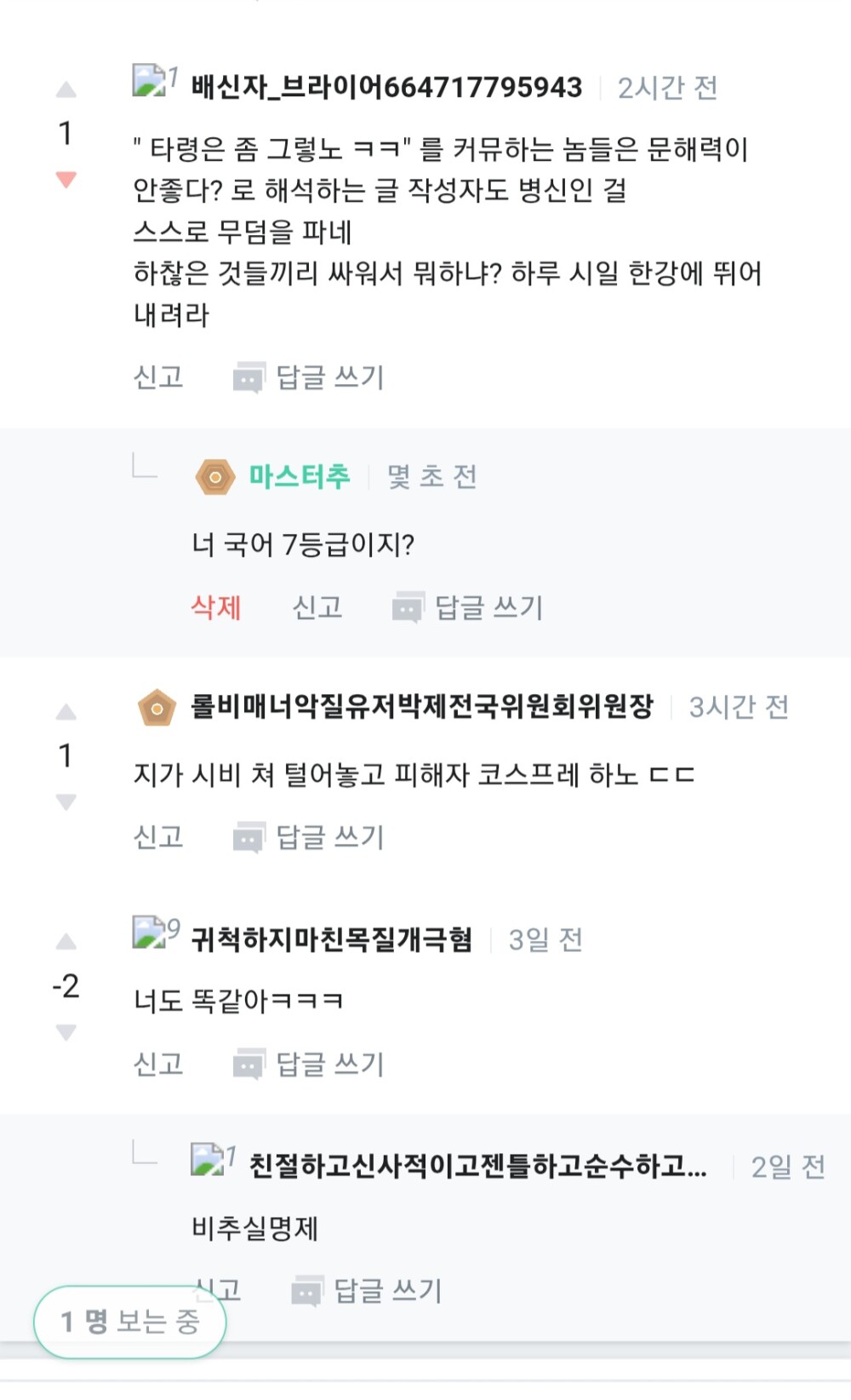 하지만 댓글 작성 시간과 새로 생긴 비추 2개를 보라 (원래는 두 개였다)