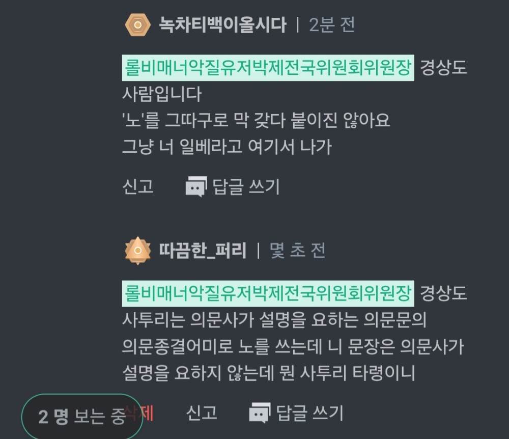 경상도 사투리를 쓸거면 "뭐 못 찾을줄알고 박제하고 그런거노" 가 아니라 "박제하고 그런거고" 또는 "박제하고 그런거가" 혹은 "박제하고 그런거나" 로 써야 옳은 표현 입니다.