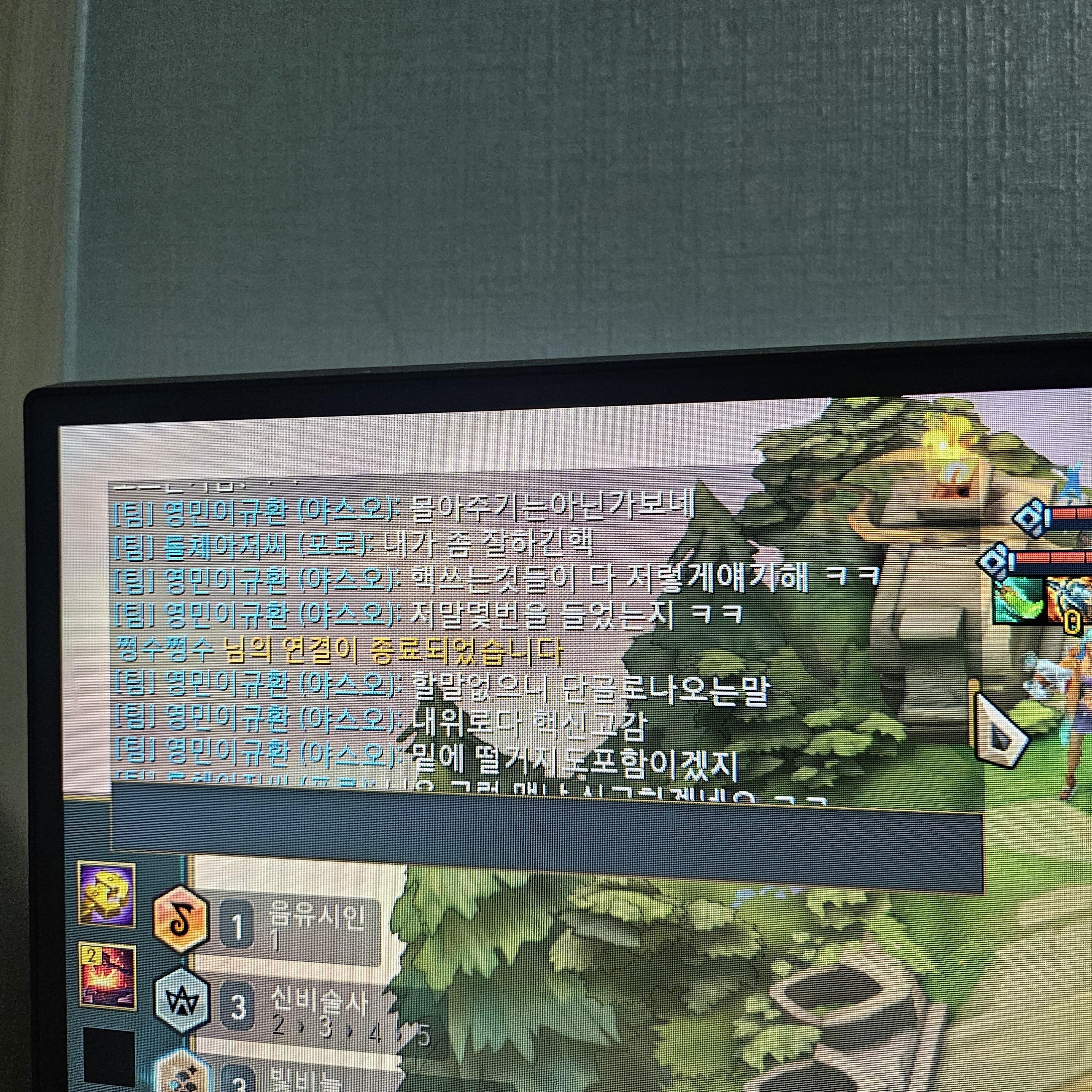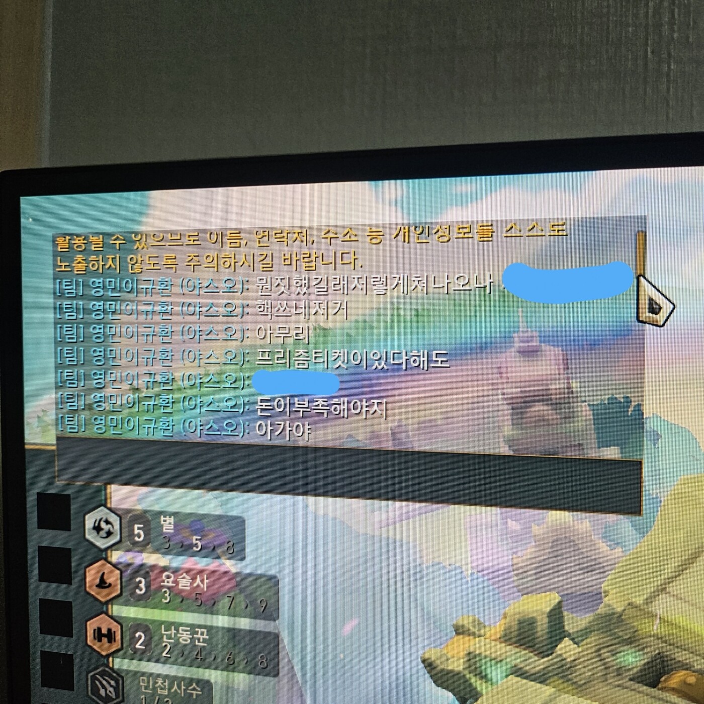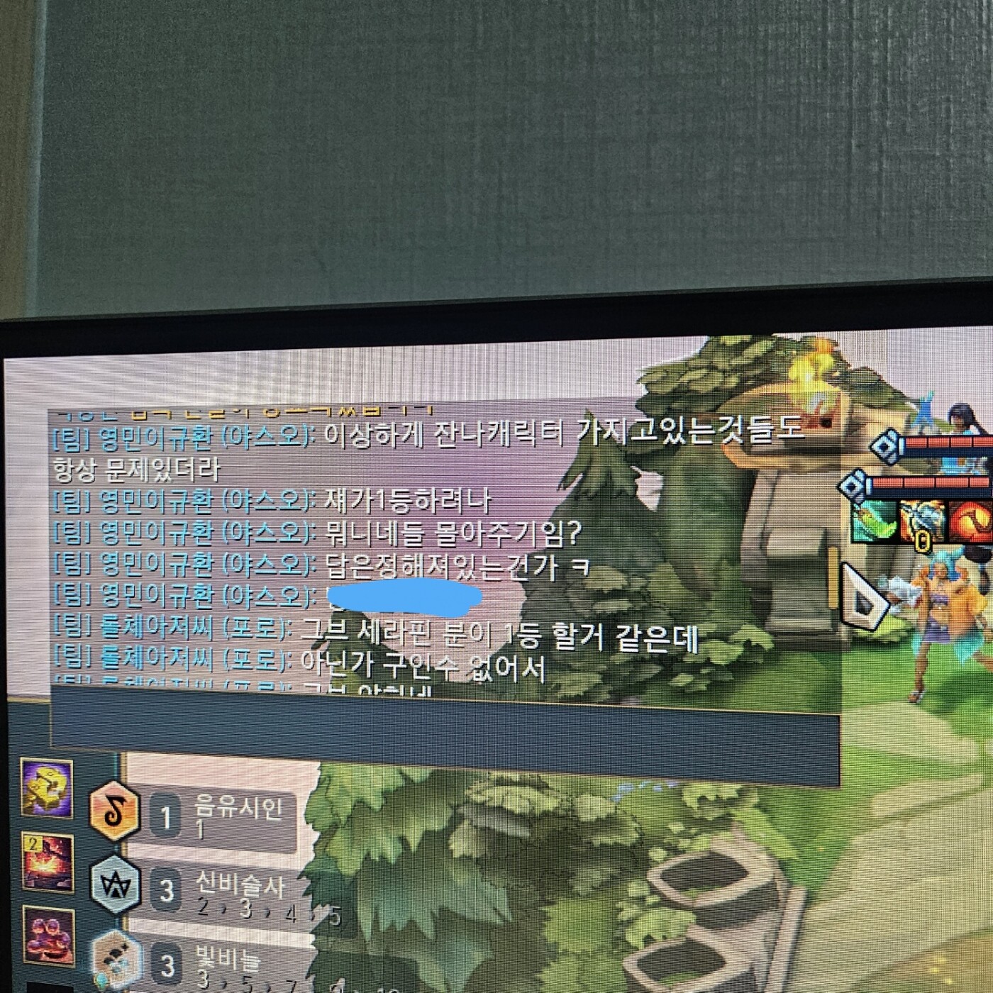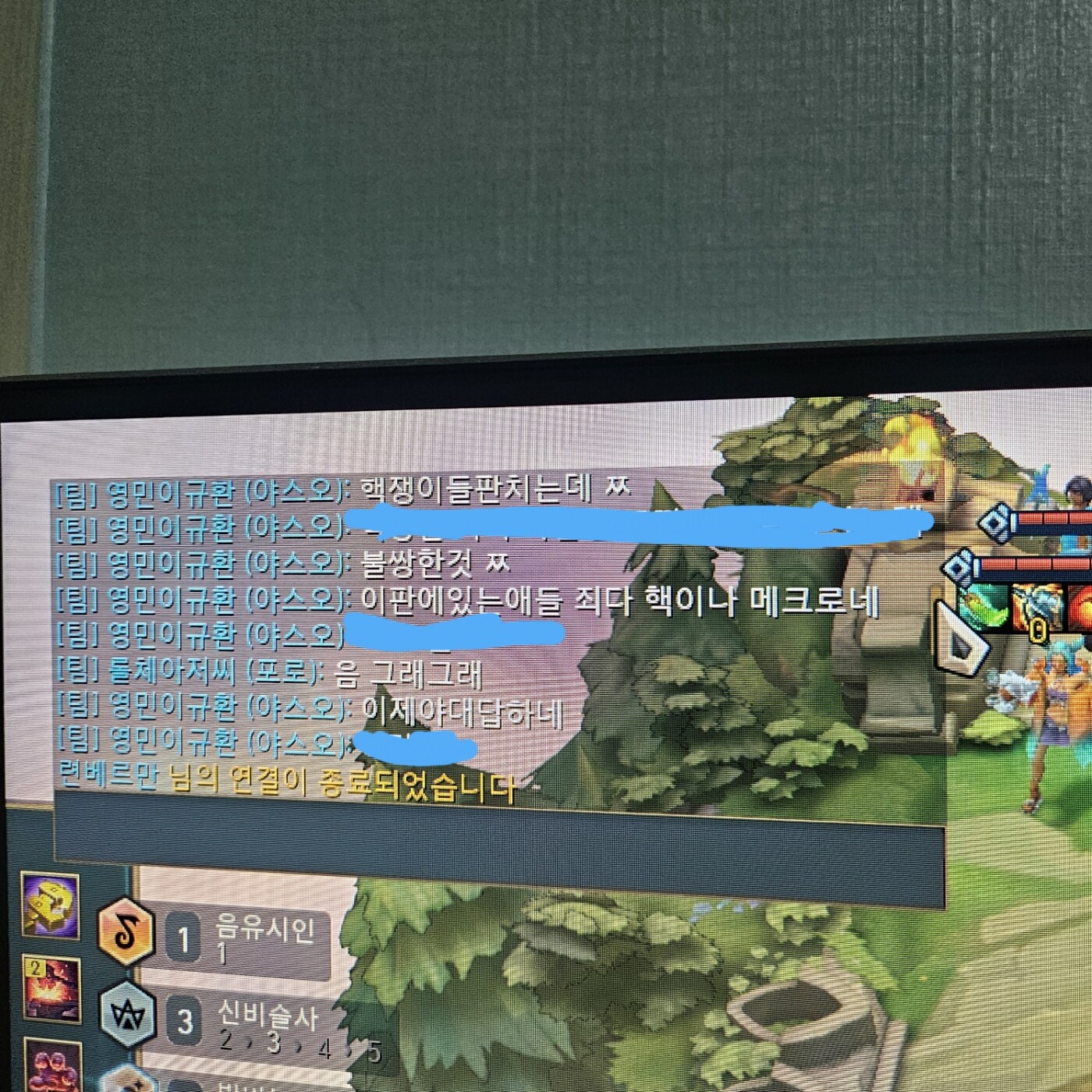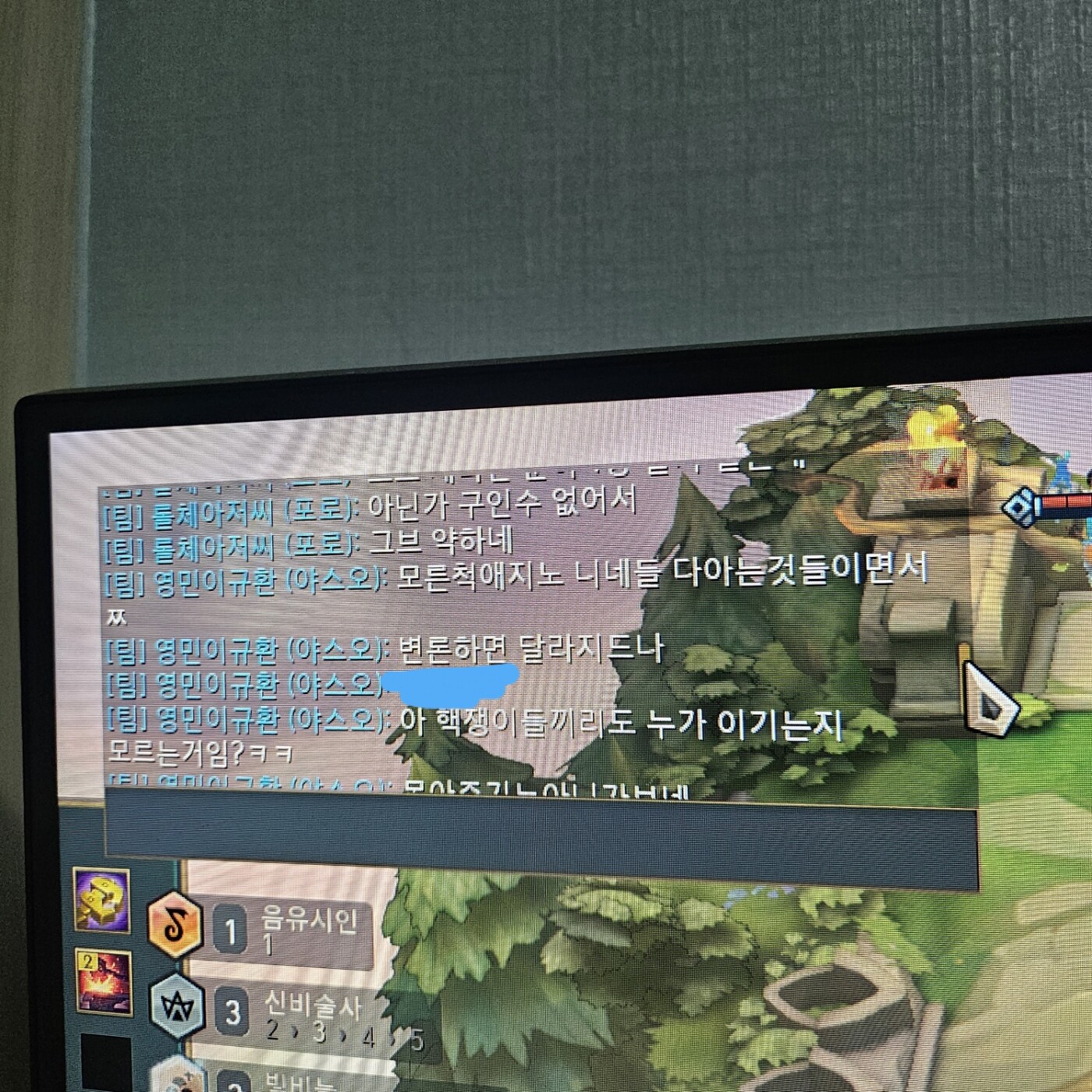 욕설 자체 블러 처리함롤토체스도 그렇고 핵쟁이들 판치는데 할맛 더 떨어짐. 롤도 멸망 했구나; 이러는데도 잡지도 않고. 유저들 그냥 알아서 손 놓게되는 그날을 기다리는거 마냥 아무것도 안하는구나. 하긴 화제성도 떨어지고 이제 누가 하겠냐. 고인물들만 고여가는거지. 쟤네 옹호하면 너도 핵쟁이