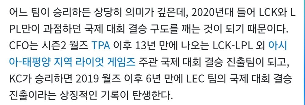 대만에겐 13년 만의 결승 vs 유럽에겐 6년 만의 결승