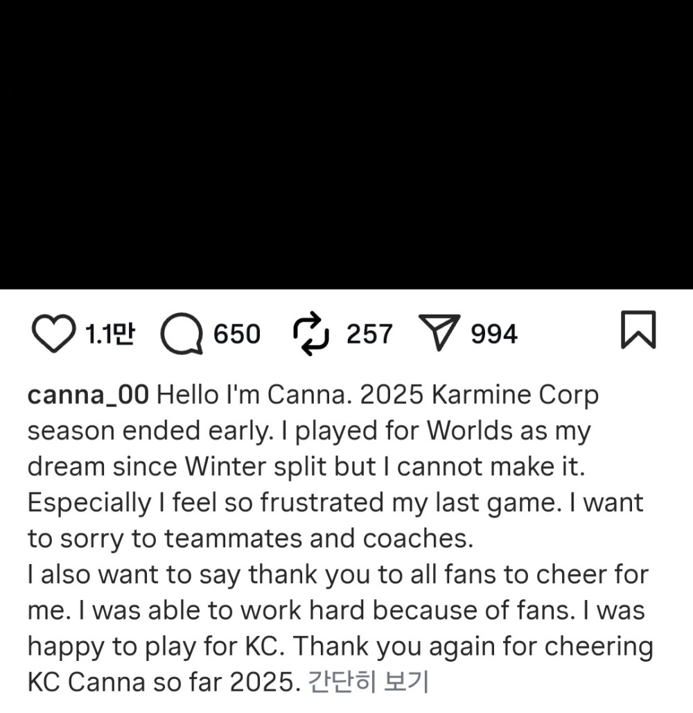 시즌을 마무리하는 칸나의 인스타