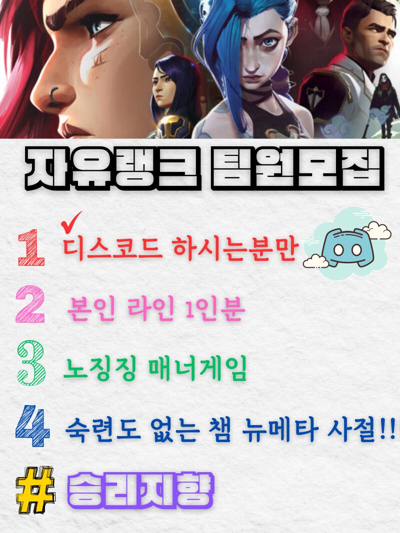 자유랭크 (원딜) 구해요 꼭 1인분 하실 수 있는분만