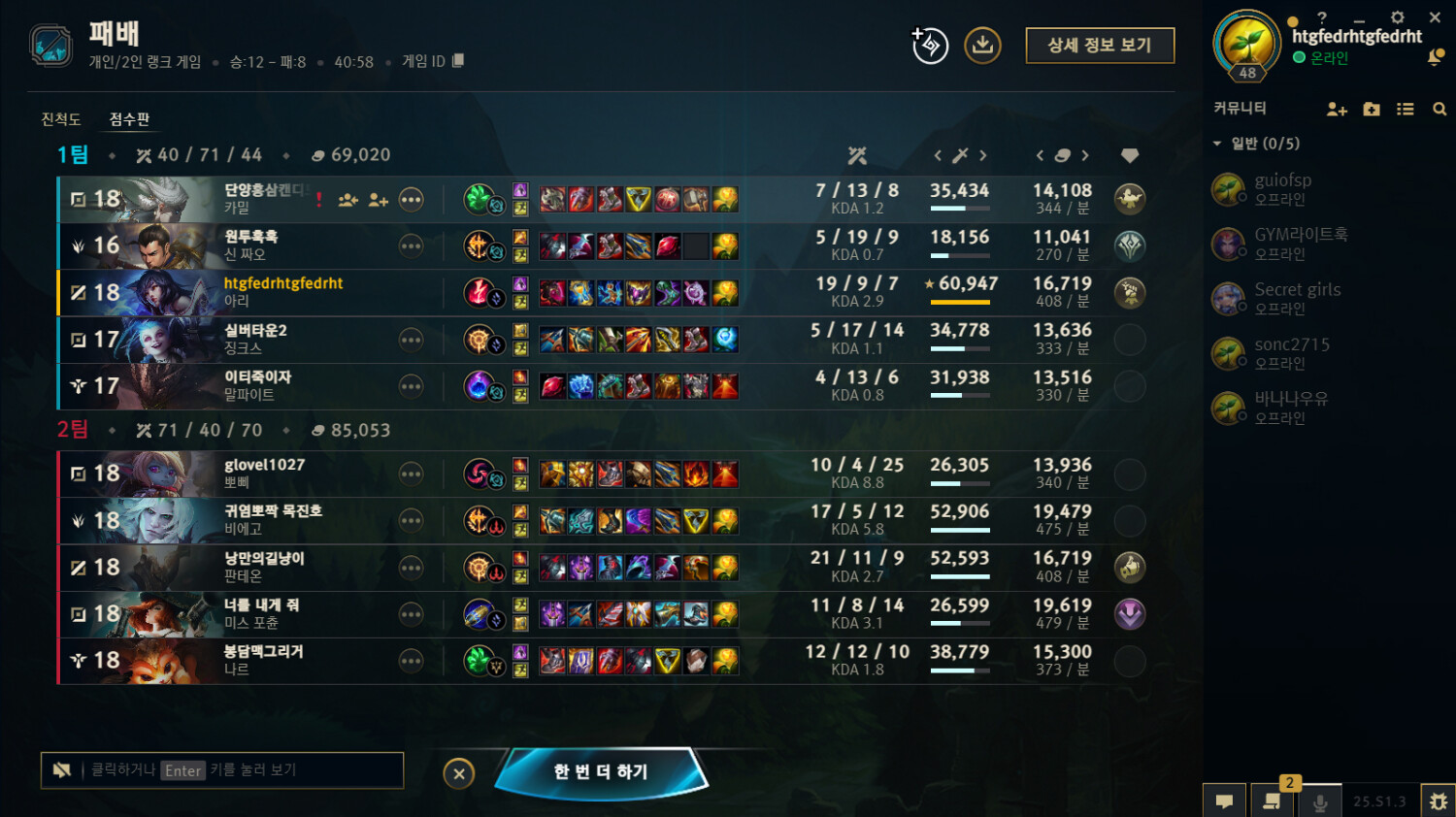 시작부터 3킬 먹은 판테온 상대로 솔킬 5번 땄는데 우리 말파이트는 서폿템 팔고 한타 합류 안하고 용 싸움 해도 안 오고 사이드 가서 미니언만 받아 먹다가 지니까 나한테 킬만 먹으면 이기는 줄 아는 ㅄ이라면서 욕 먹음 매혹도 걸어주고 용도 먹어주고 다 해줘도 욕 먹는게 아이언의 현실(매혹 걸어줘도 매혹 안 거냐고 욕도 먹음ㅋㅋㅋ)