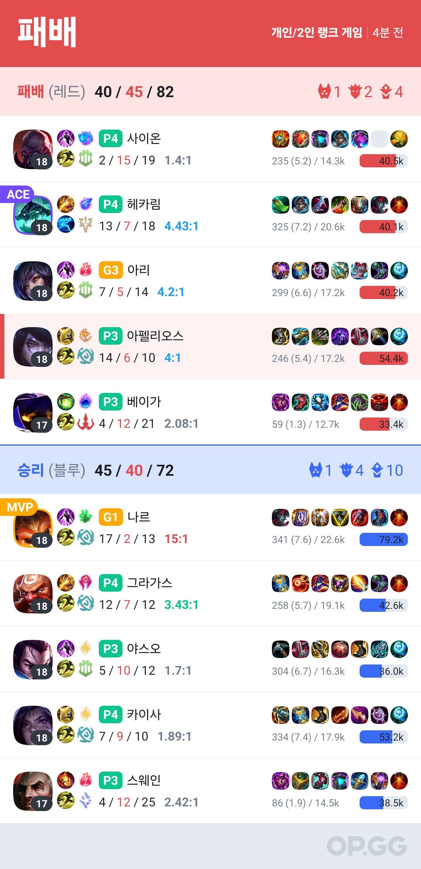 상대 나르에 야라가스에 카이사인데 안죽고 딜 열심히 해줬는데 탑정글이 두번 던져버려서 게임 갔다 ㅜ