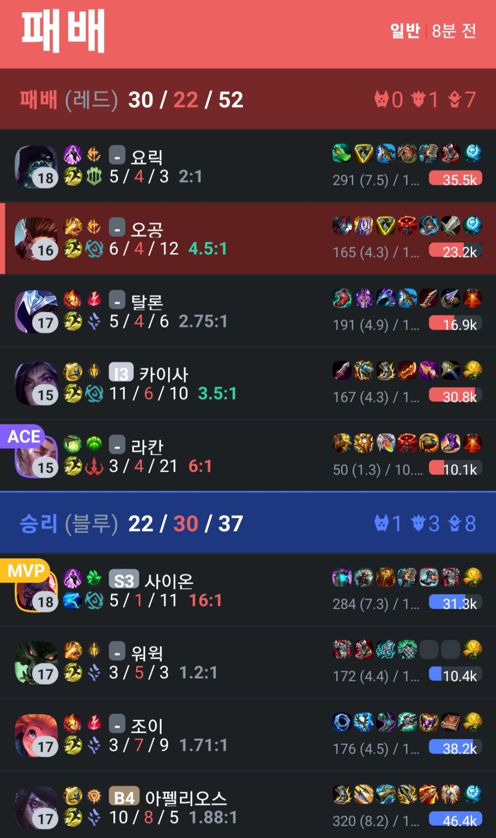 초반에 잘했다 아펠한테 무리하게 다이브해서 제압골드준거. 정말 죄송합니다. 앞으로 이런일 없게 확실히 집중해서 게임하겠습니다. 팀원여러분. 죄송합니다.