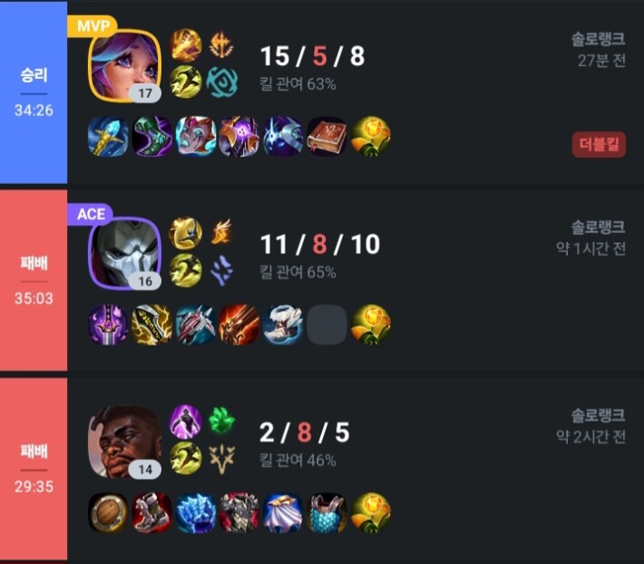 오늘 롤 많이했당