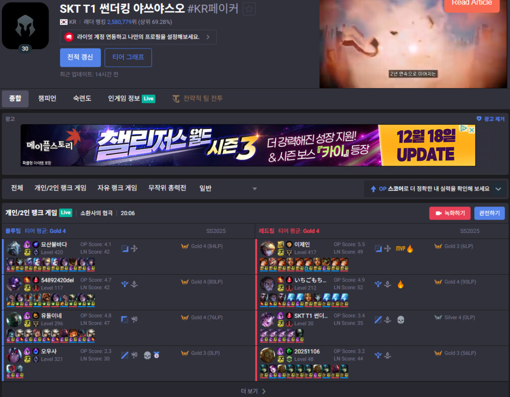 >>>>얘 솔랭에 실버4인데, 골드3~4구간에 매칭시킴. <<< (듀오없음) 여기가 그마, 마스터구간이면 매칭폭넓은거 ㅇㅈ. 근데 골드실버에서 뭔 매칭폭이 이러냐 이래도 매칭주작없다고?!