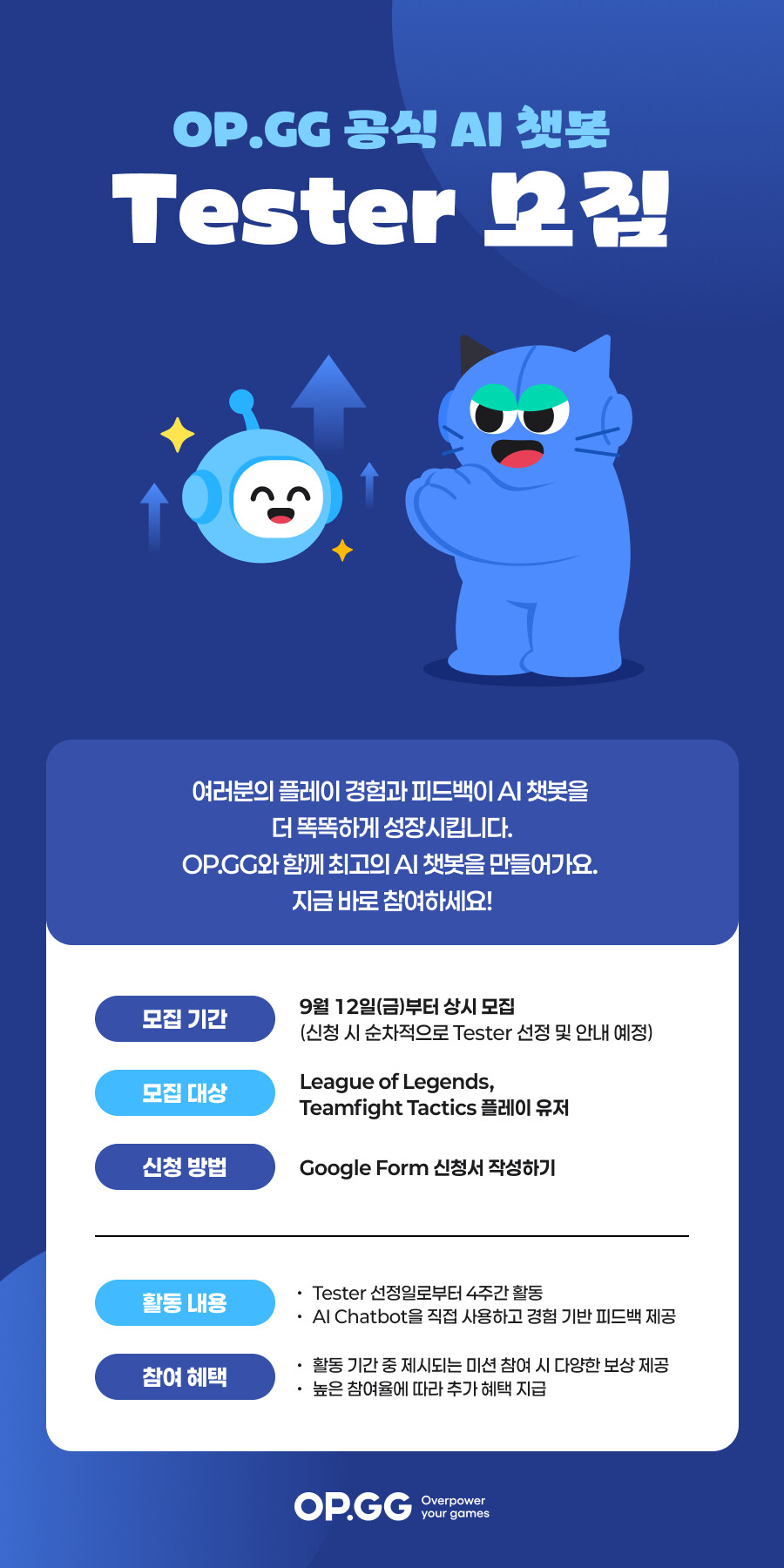 🚨 OP.GG 공식 AI 챗봇 테스터를 모집합니다!!🚨