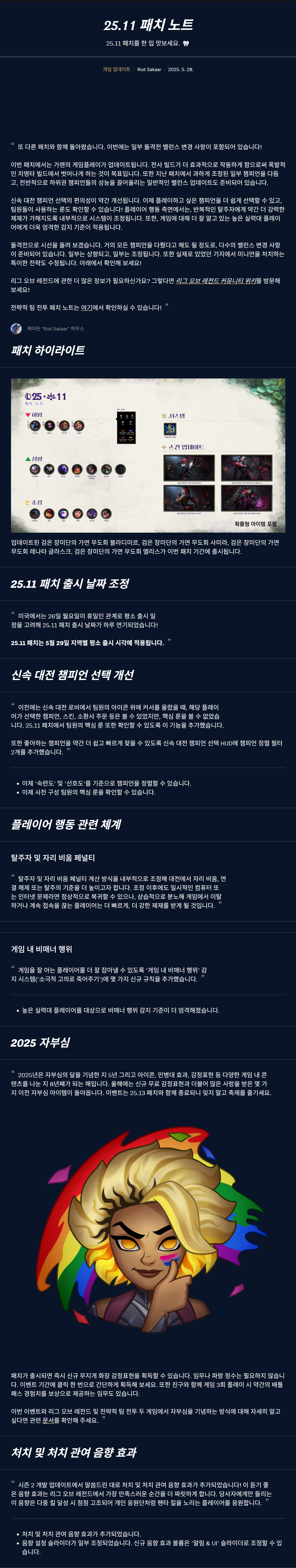 [25.11 패치 노트] 돌격전 밸런스 변경 사항 포함, 챔피언 밸런스 조정 소식을 확인하세요!