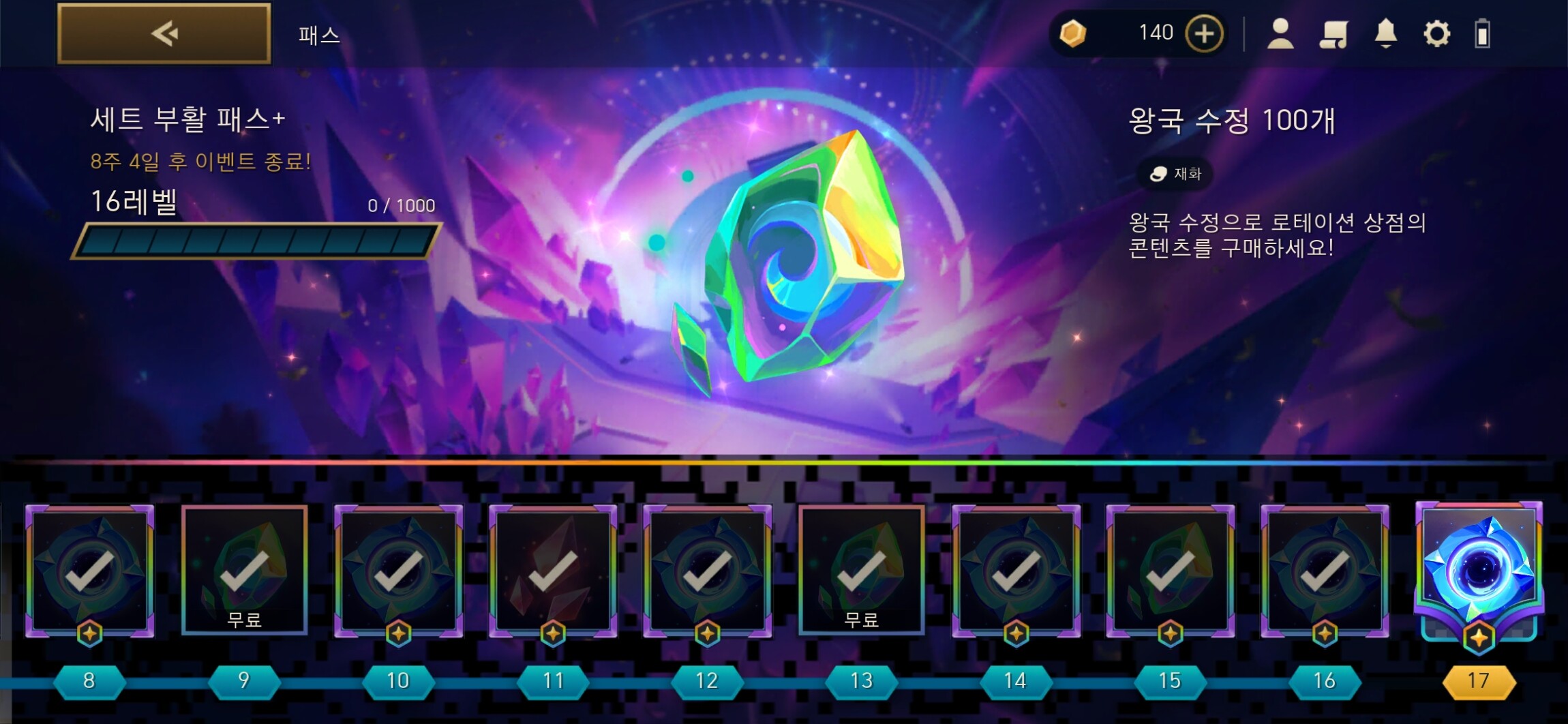 롤체 세트 부활 패스 16에서 17렙으로 넘어가지지가 않는데 만렙 어케 찍는지 아시는 분 계신가요?