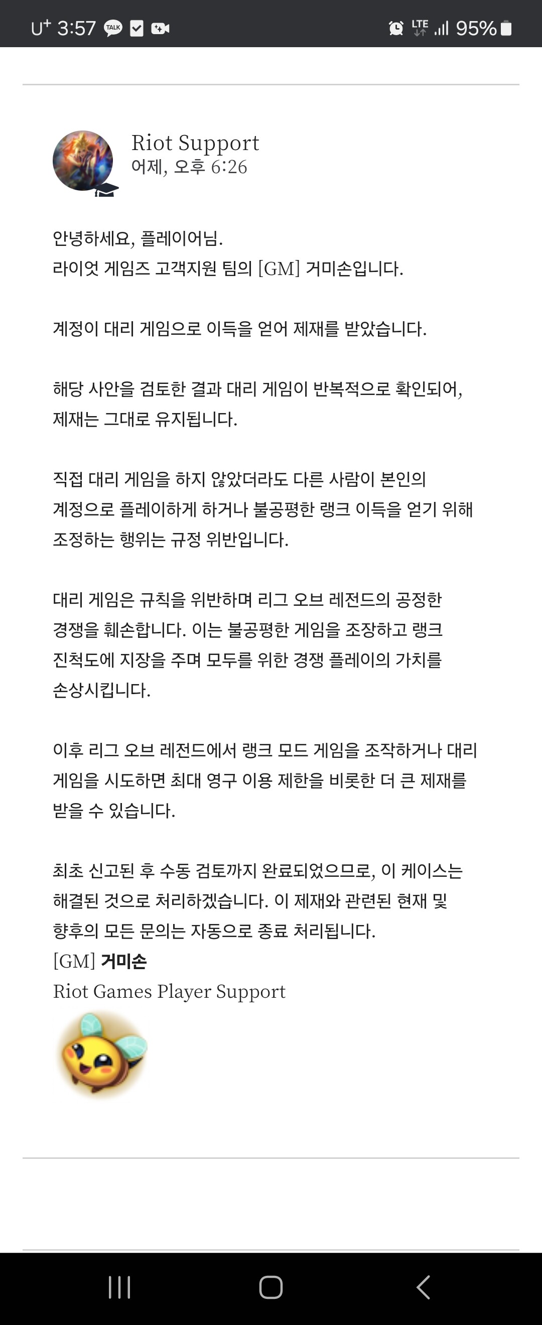 제 계정이 억울하게 대리의심 정지를 받았습니다.