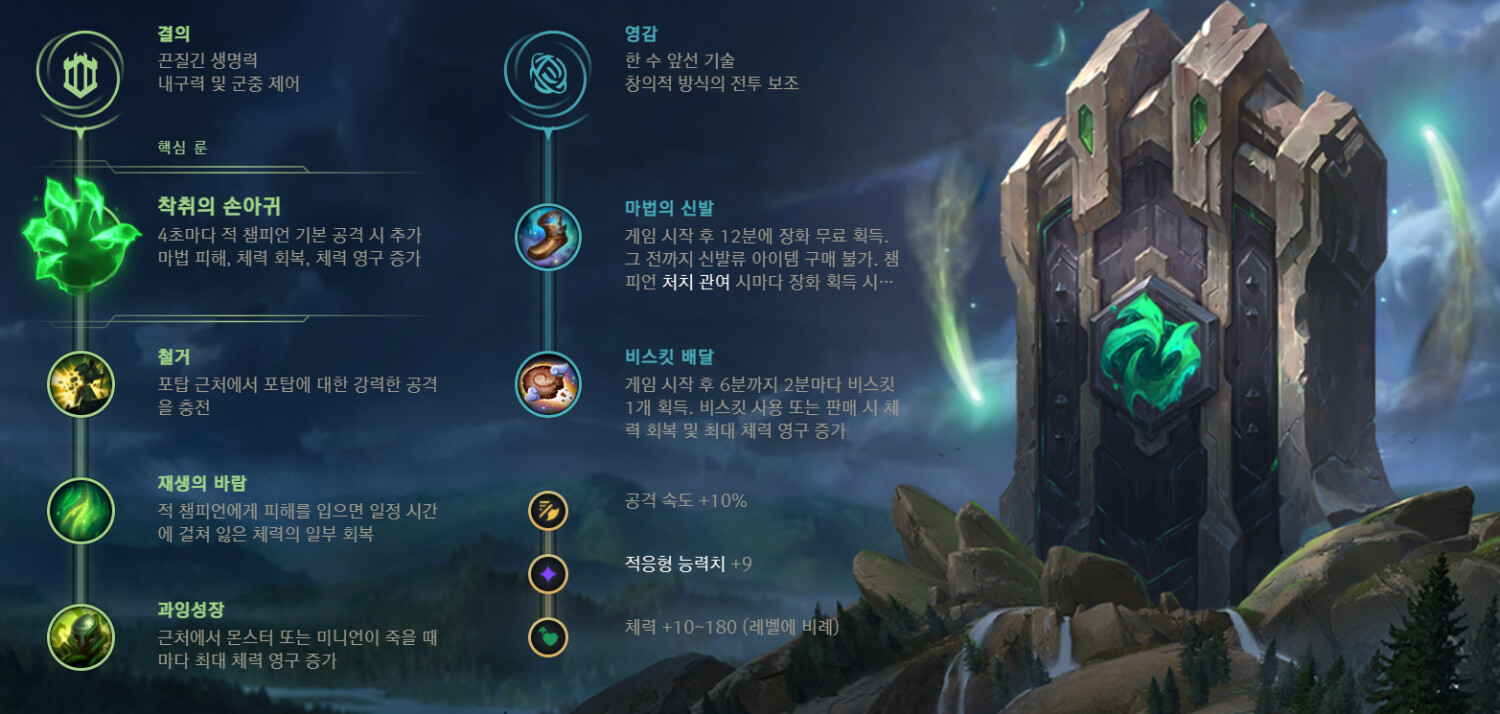 Gs7-i22dz-AY1EhzkmnqXBlnBkvhWa8ld5KjemLjiFUxA_8P-jm6HFp1kJiNXo7DeqTil9qcd9SwPSQhOb6H7g.webp 영감쪽은 여러가지 조합이 가능하지만, 비스킷 배달은 필수입니다. X6AEwtxBNoOJNLg90hKGlNWQOm6z_HLZDZk9DYJUEirWikbd2B9z2yrzlN4-bwjCLpxKSL9e6C-tHIZZ6GHM2Q.webpORBE9S9kFV8OfRPxFQjearVCxpWejUyplj4q-qgOBCombR3BPkLGl0wNcugl3-msifdaXx-T70XYLn2SS_KLUQ.webp 우주적 통찰력, 마법의 신발은 진짜 100% 취향에 따라 들어주세요. mb8vrJ0J7pounZu3_OzXyVZVPA3E022kzF7_TPY-gK9cAZ_TXJnWHYeC52wElrlTSMZfFbFb2pa-1v_e98p4x7ZuKPO01e2WZanmIxm8lzZ9zd6EPsSDRG8lNgnS_6McTPSsnX2vBrp-Mbo9r8k15g.webp 예외로 다재다능 같은 경우, 무조건적으로 들면 안됩니다. 선템 도란 방패 갔는데 내 룬이 다재다능이면 정말 하등 쓸모 없어요. 도란의 검 다재다능을 드는 경우는 딱 하나, 잭스가 줘팰 수 있는 상대를 만나서 내가 선템으로 도란검을 구매할 때입니다. 여신의 눈물빛나는 티끌천 갑옷 도란검으로 다재다능 3스택을 쌓을 수 있으니, 첫 귀한때 여눈+티끌 or 천갑옷을 구매해 적응형 능력치를 받아 강하게 가져갈 수 있습니다. 특히나 탱 빌드는 공템이 없어서, 이 적응형 능력치가 초반부터 후반까지 밥값 든든하게 합니다.