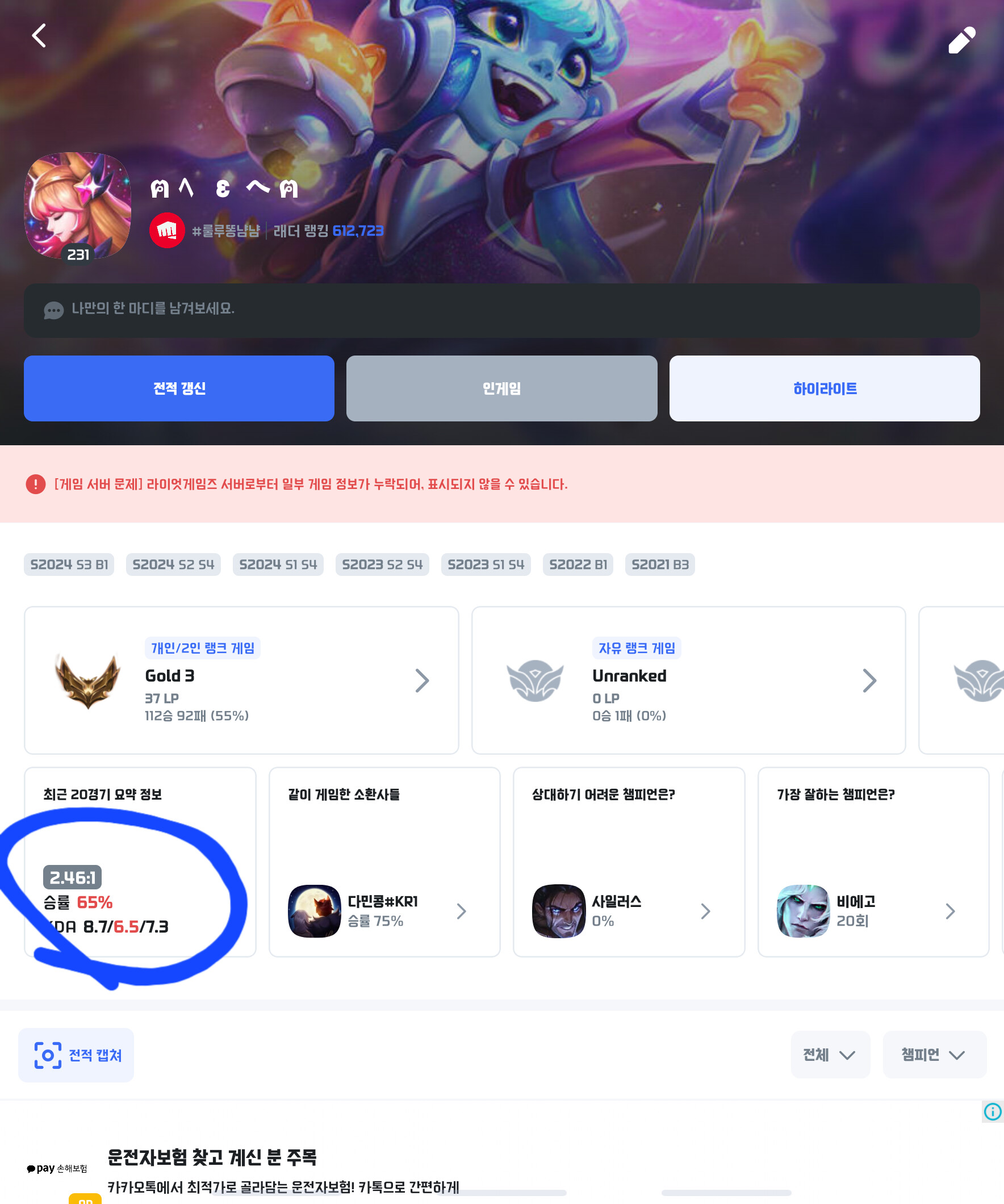 원래 승률 70% 나오다가 1코 철갑궁 가니까 똥좀 쌌다