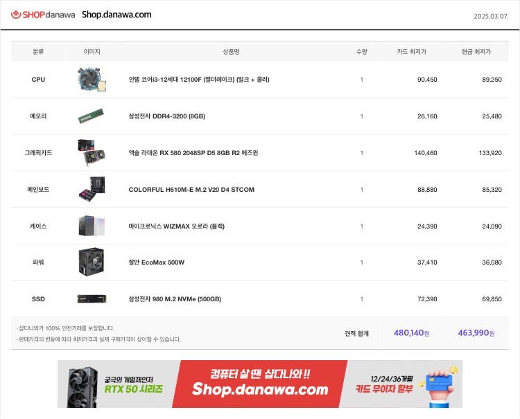 당시엔 내가 하이엔드급 견적만 다루고, 내가 직접 사용하기도 했기에 극 가성비에 무지했지만 현재는 반성의 시간을 가지고, 엔트리급 견적들도 스스로 공부해보았기에 자신 있게 추천해보는 견적 되시겠다.
