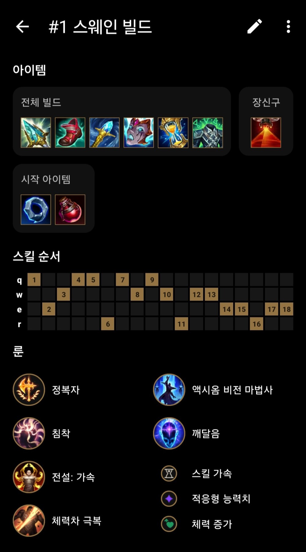 영겁 버프 이후 간간히 써보고있는데 탑 스웨인 입장에선 꽤 매력적인 템인거 같음. 기존 라일 혹한 빌드 상위호환 느낌? 템트리는 영겁 - 라일 - 리안 - 존야 - 정령 순으로 가고있음 단점은 쿨감템이 거의 없어서 룬(쿨감파편, 액시옴, 깨달음)으로 보완해아함 그리고 가끔 빡센애들 나오면 뼈방패 - 과잉성장 들기도 하는데 이때는 쿨감신 고정으로 가야함.