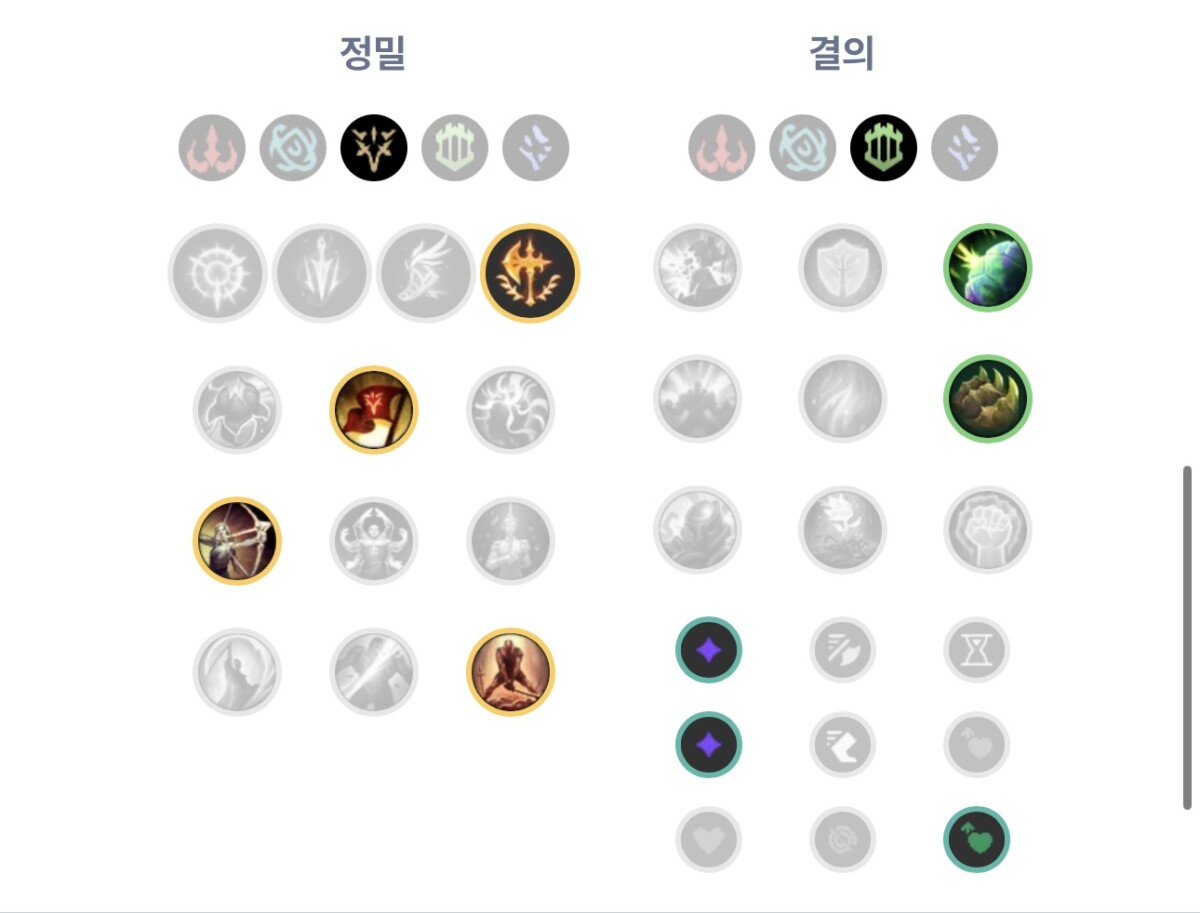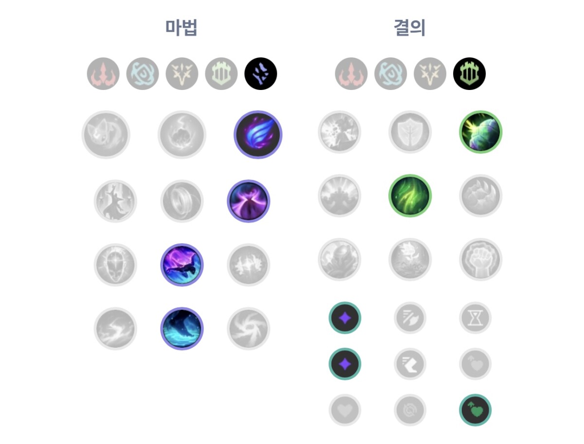 2. 모데카이저 장인들의 템트리, 룬, 스펠 분석 본인은 원래 균열, 우주적 추진기(우추), 벨트, 리안드리 중 두 가지를 1~2코어로 섞어 올리고, 3코어로 존야를 간 후, 4코어부터 정령의 형상, 작쇼, 란두인, 대자연의 힘, 절망 중 상황에 맞게 탱템을 선택하는 빌드를 채용하였습니다. 이 빌드는 제피루스님 빌드를 참고해 만든 것이며, 풀템이 나오면 딜도 버티기도 매우 좋은 편입니다. 하지만 풀템이 나오기 전(정령의 형상 올리는 과정)에는 다소 어중간한 빌드가 되어버리는 단점이 있습니다.