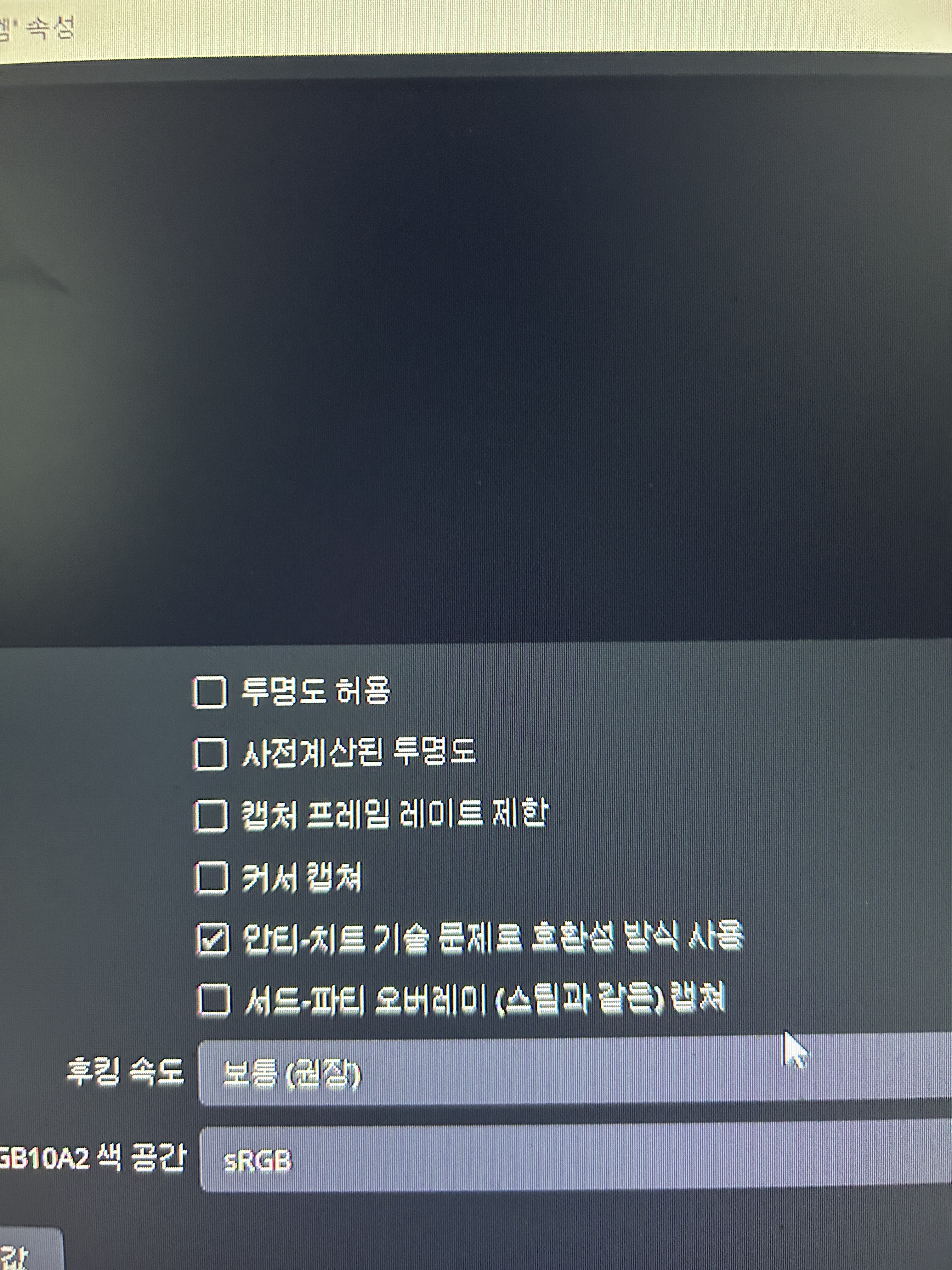 안티-치트 기술 문제로 호환성 방식 사용을 끄면됨