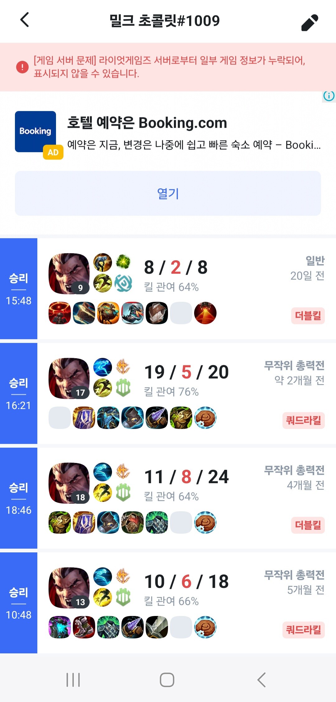 (필자의 최?근 몇 경기 전적. 가장 최근의 일반 전적은 못 본 걸로 해주자.)