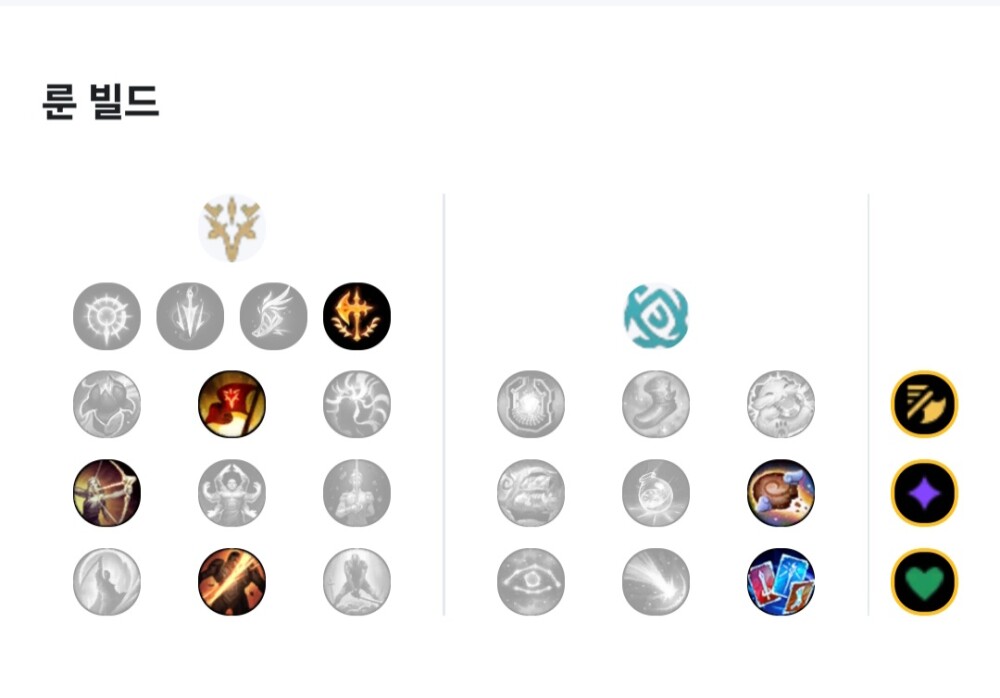 정복자 - 승전보(본인이 마나관리 진짜 못하겠으면 침착) - 민첩함 - 체극 / 비스킷 - 다재다능 / 공속 - 공격력 - 고정체력