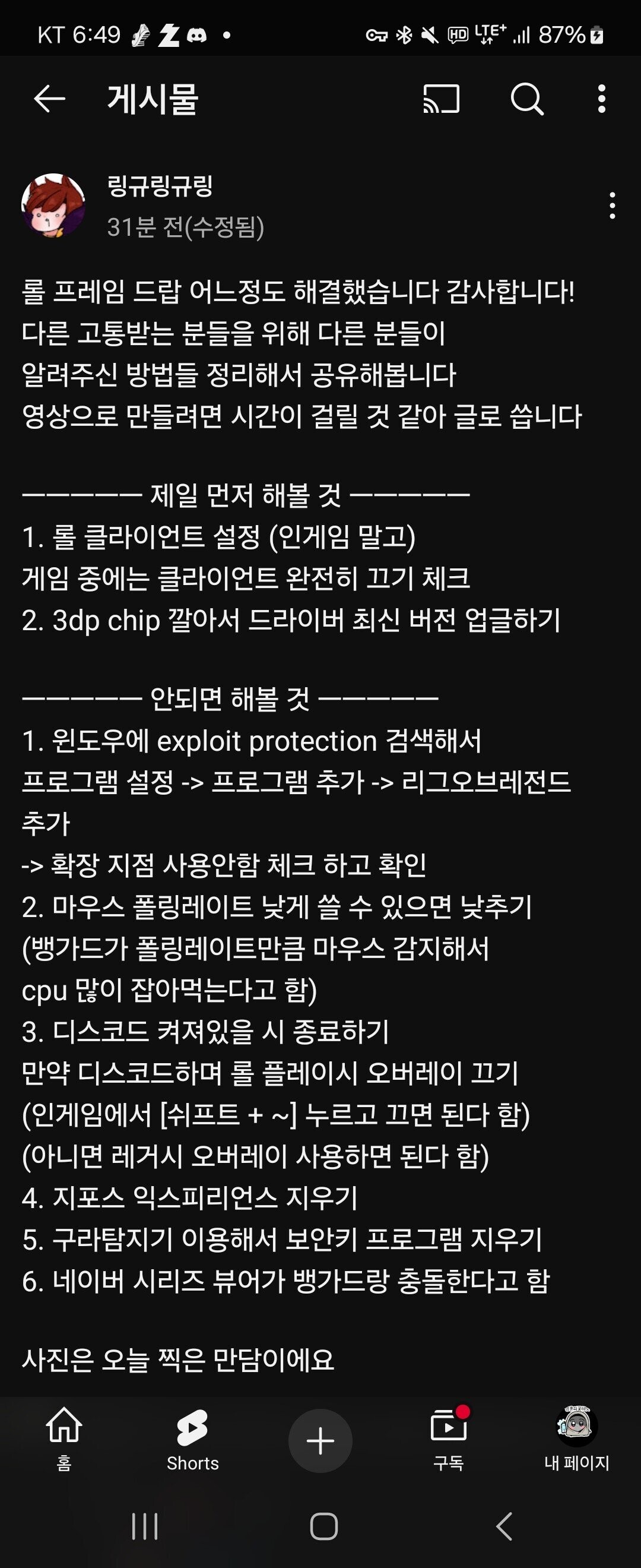 혹시 협곡하다가 렉걸리거나 끊김있으신분들 이거 보셈