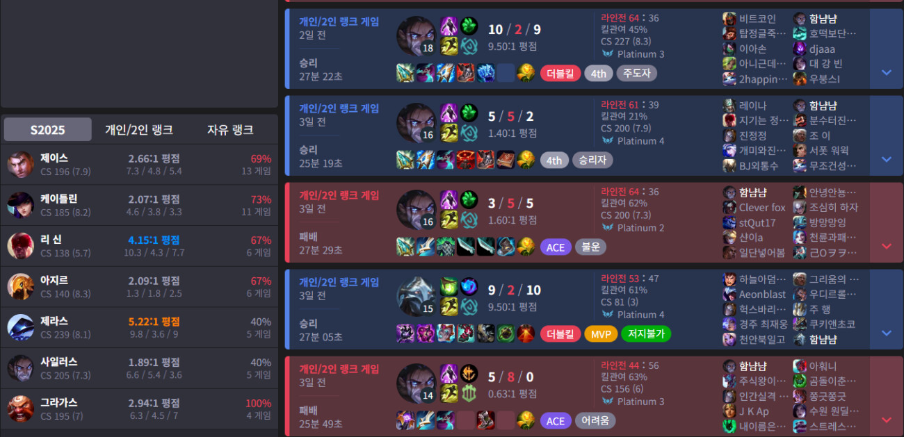그리고 나보리를 가서 E 쿨을 계속 줄이기에 사일러스 사슬이 한번 빠진걸 보고 아 저녀석 그랩 없으니 좀 나가서 때렸다가 쿨 돌았을 때 빼야겠다 하는 뒷라인을 기습적으로 물 수 있음. 이 상황이 상당히 자주 나옴.