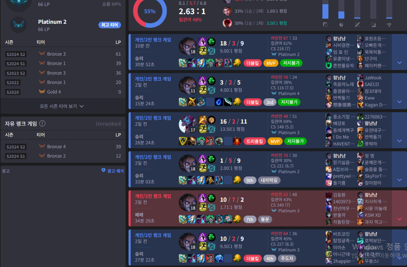 이렇게 3템이 나왔으면 계속해서 스킬을 굴리며 무라마나의 마나 + 영겁의 마나로 뻥튀기된 공격력으로 AD계수 1.3의 평타를 계속 박아넣을 수 있음. 평타딜도 아픈데 스킬도 무라마나의 추가 물리 피해를 계속해서 넣어 AP쪽에 가까운 하이브리드 딜을 끊임없이 박아넣는게 가능함.