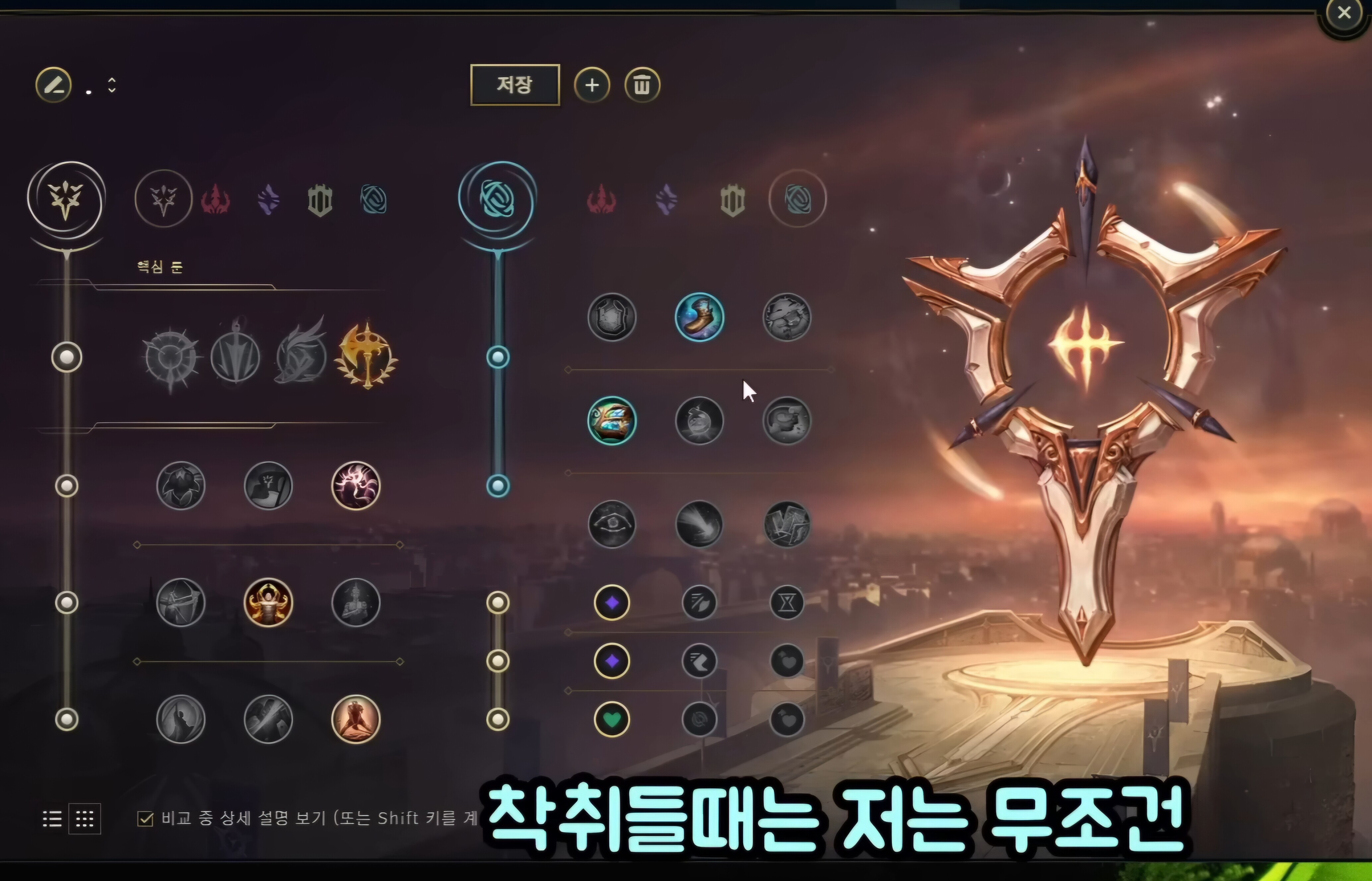 정복자를 메인 룬으로 하고 라인전 갉아 먹을수 있는 상대로는 착취 주문작열 마순팔 기본적으로 메인으로 가는 룬 그웬 잭스 피오라 같은 라인 유지력 없는 애들 탱커 상대할때 4 원거리 나왔을때