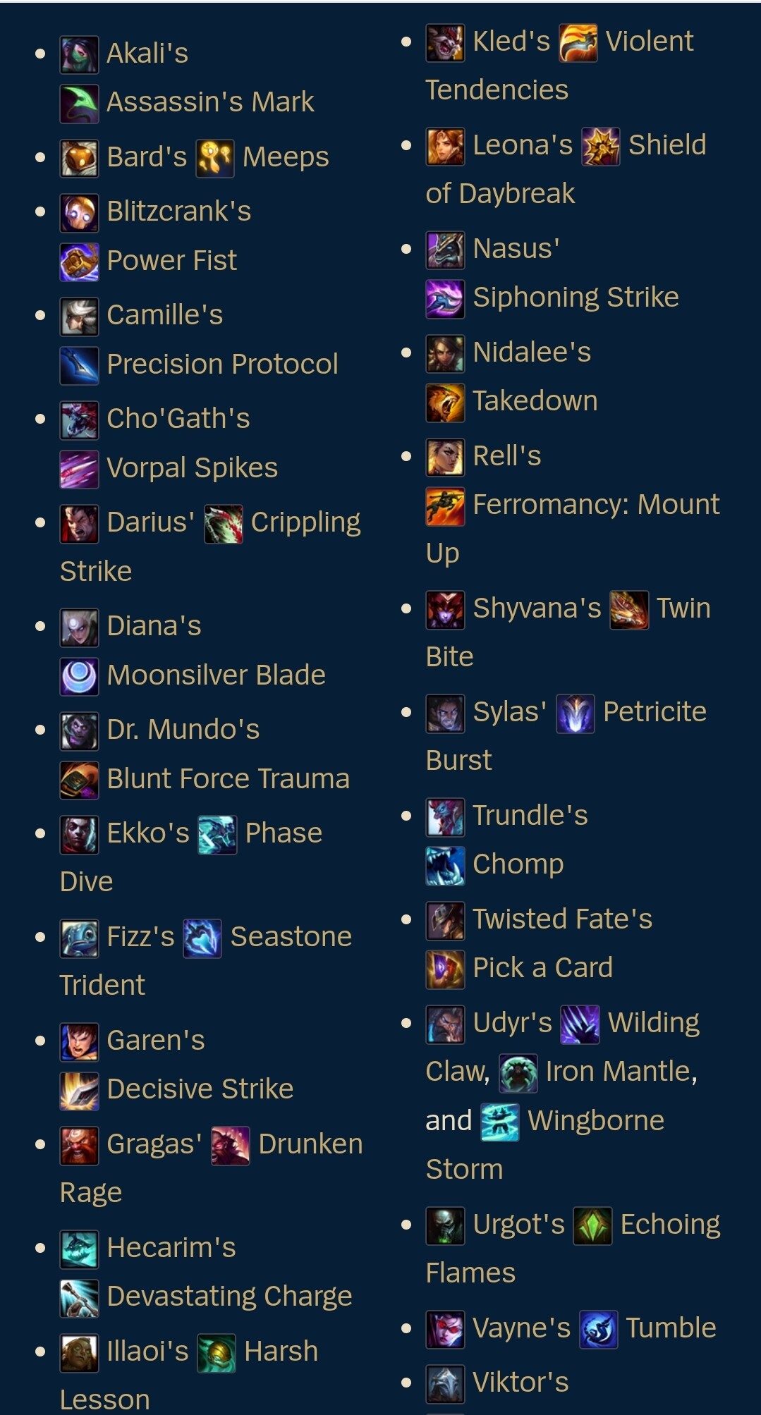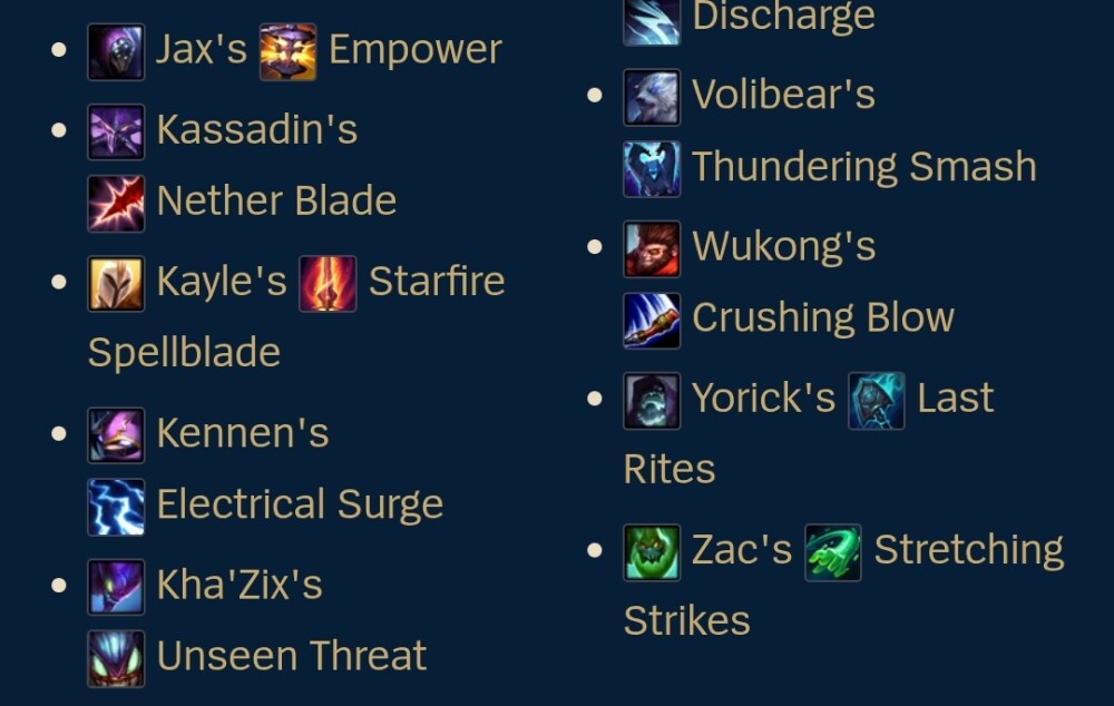 챔피언의 스킬이 아닌것 중에서 아래의 것만이 유일합니다