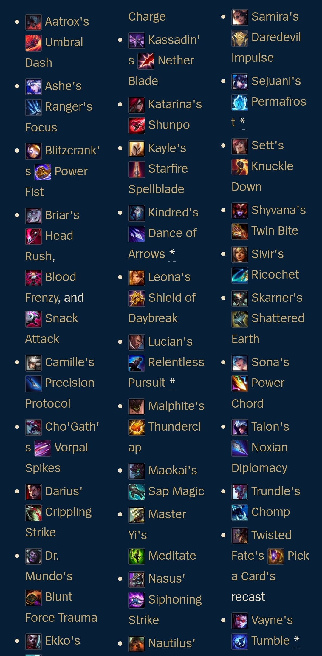 *Uncancellable Windup (취소 불가능한 시전)과는 다릅니다 (ex 사일 패시브 평타는 취소 불가능한 시전이지만 평타 캔슬 능력은 없습니다)