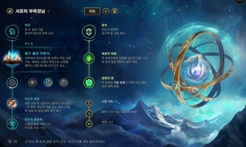 상대 AP 딜러가 불태우기처럼 초당 마딜을 주는 딜러면 루컨보다 대자연을 먼저 구비하시길 바랍니다.