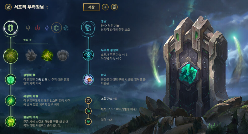 이처럼 거의 모든 계열의 룬을 선택 가능하며 이로 인해 카운터 상성을 뒤집거나 다양한 운영과 변칙적인 게임 플레이가 가능합니다.
