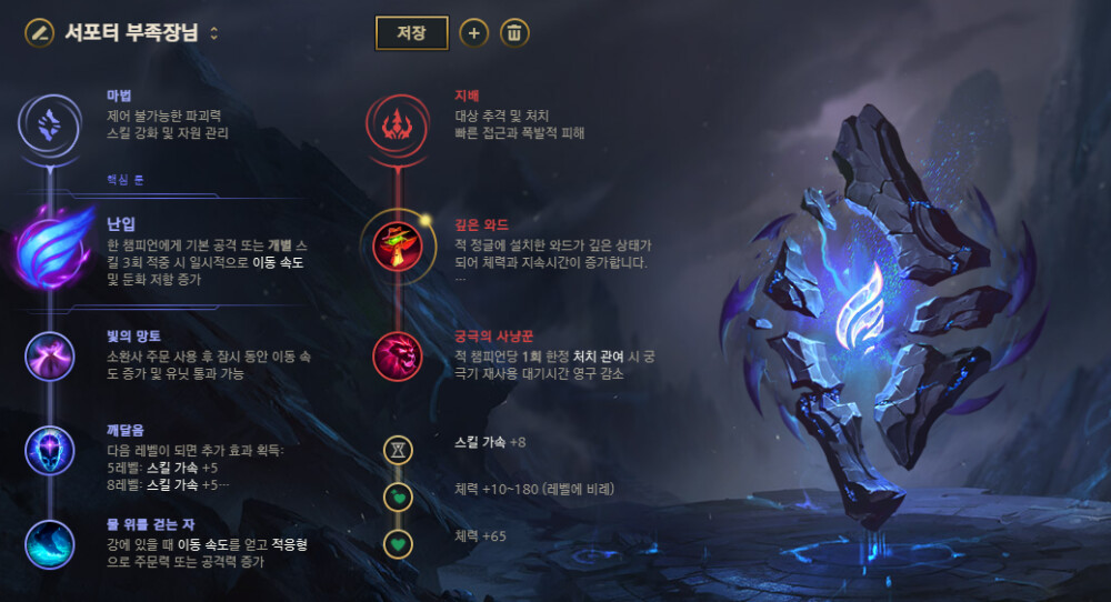 결의쪽 룬입니다. 상대가 만만할경우 부룬으로 지배를 들어 로밍쪽으로 돌리셔도 됩니다.