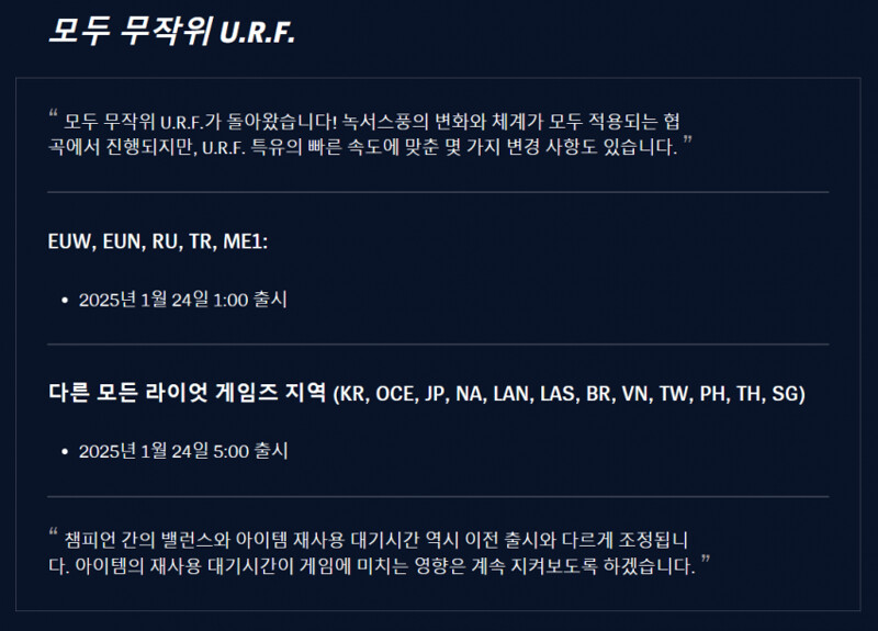[오피셜] 무작위 U.R.F (우르프) 오픈 시간 확정!