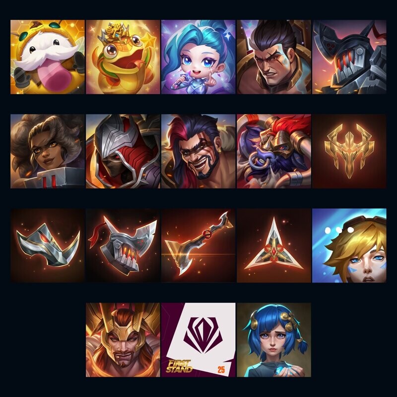 ㆍ악의 여단 애쉬 어둠의 의식 크로마 + 아이콘 [40ME] ㆍ초능력특공대 마스터 이 헌터 크로마 + 아이콘 [40ME] ㆍ감시자 이렐리아 결의 크로마 + 아이콘 [40ME] ㆍ소울파이터 진 무제한 크로마 + 아이콘 [ 40ME] ㆍ요정 왕국 카타리나 매혹 크로마 + 아이콘 [40ME] ㆍ프로젝트: 제드 심판 크로마 + 아이콘 [40ME] ㆍ재의 수호자 깨어난 불꽃 크로마 + 아이콘 [40ME] ㆍ혼돈의 수정 탈리야 탈환 크로마 + 아이콘 [40ME] ㆍ초능력특공대 아이콘 [5ME] ㆍ2020 K/DA ALL OUT 아이콘 [5ME] ㆍ새해 야수 이벤트 패스 아이콘 [5ME] ㆍ2021 프로젝트: 이벤트 아이콘 [5ME] ㆍ2021 악의 여단 패스 아이콘 [5ME] ㆍ연미복 이벤트 패스 아이콘 [5ME]