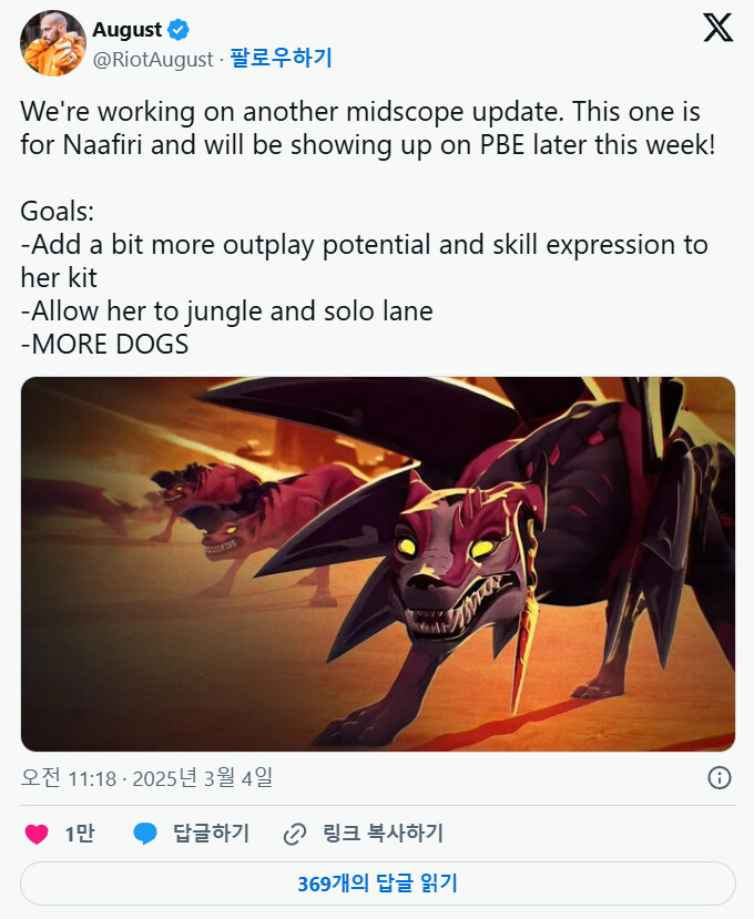 라이엇 개발자 어거스트) 나피리 챔피언 재조정및 패치예정
