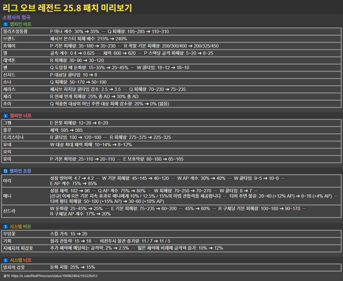 [📢소식] 25.08 밸런스 변경사항 (한국어)