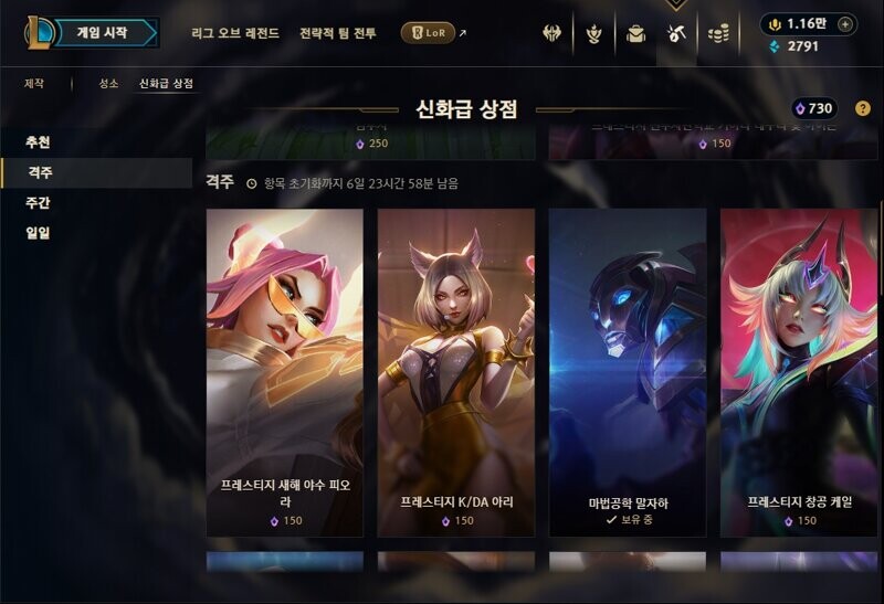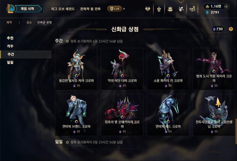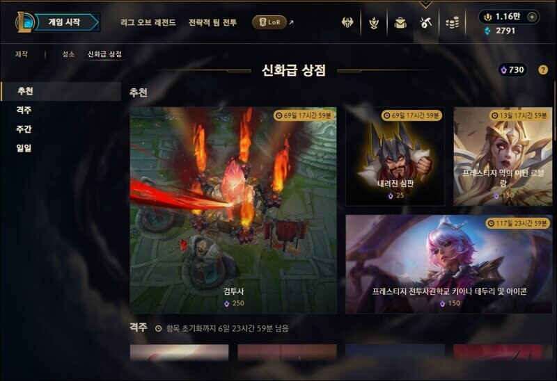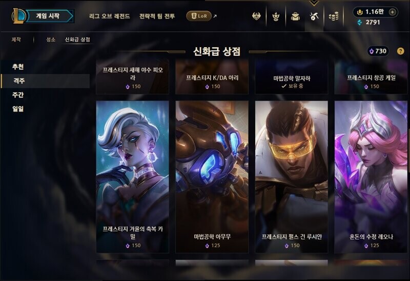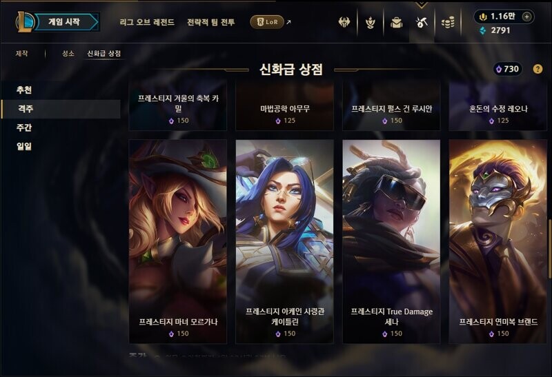성소 및 신화급 상점 업데이트