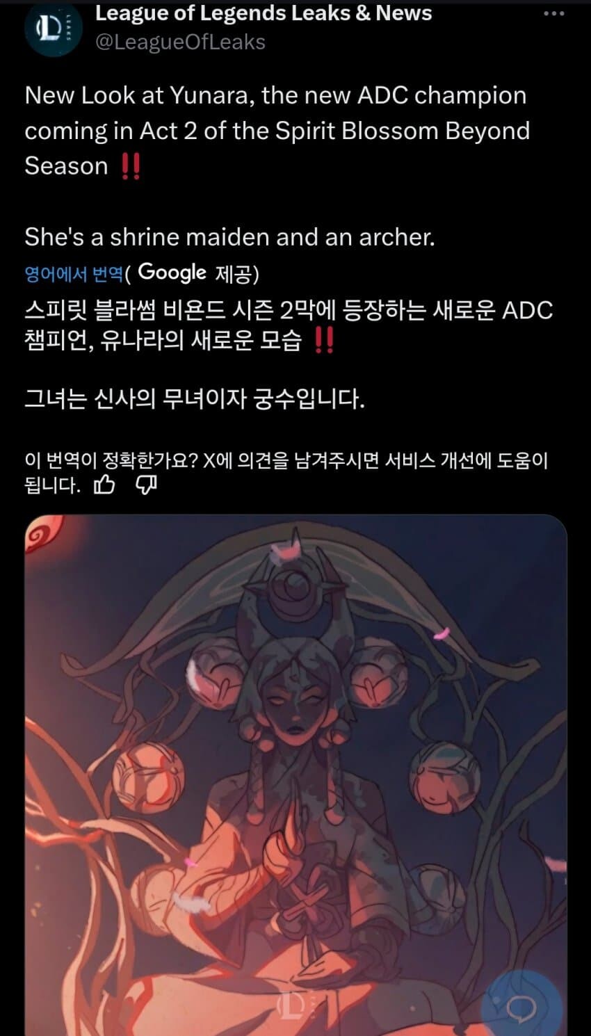 신챔피언 유나라는 활을 쏘는 컨셉입니다.