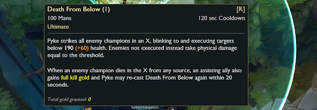 - 최대 데미지(처형가능 체력), [190/240/290/340/390/440/475/510/545/580/615/635/655] - 레벨 6부터 시작