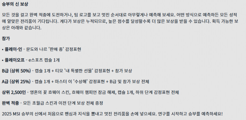 MSI 승부의 신 완벽적중 총 4222명