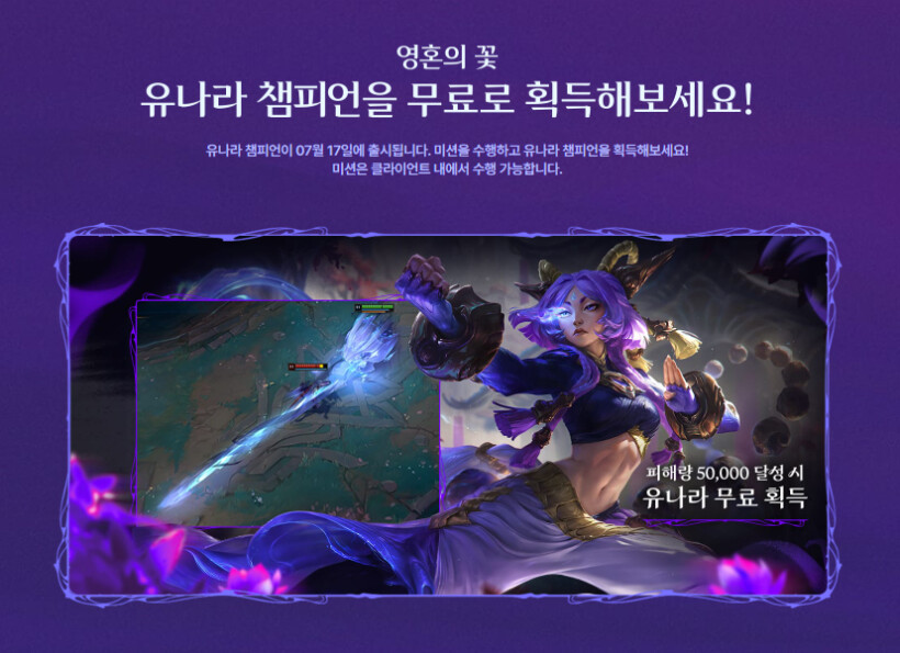 7월 17일부터 피해량 미션 달성하면 유나라 무료로 지급함