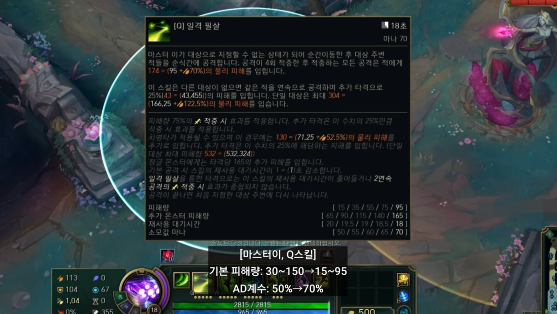 이거 맞냐? 뭔 마이의 Q스킬 기본 피해량을 엄청 죽이는 생각을 하는거냐? 정글링 너프도 주더니 ㅅㅂ. 아니 라이엇아 생각이 있는거니? 뭔 치명타 아이템 뽑기도 전에 망하겠다. 심지어 칼날비 들어도 사냥꾼의 증표 없어서 드럽게 약한데 계수는 왜 버프한거니 ㅅㅂ
